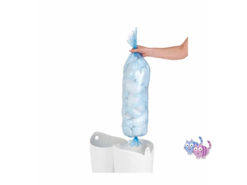 UPOZORNĚNÍ! Výrobek by se měl požívat pouze v souladu s účelem, pro který byl navržen, tj. jako plenková nádoba. Jakékoli jiné použití se považuje za nevhodné a může to představovat riziko. Obalový materiál odstraňte a držte jej mimo dosah dětí, protože může způsobit uškrcení. Pokud výrobek vykazuje známky poškození, nepoužívejte jej a obraťte se na prodejce nebo výrobce. Nepoužívejte hrubé látky, chemikálie ani chlór! Nepoužívejte abrazivní čistící prostředky nebo kapalné čistící prostředky, které jsou obzvláště agresivní. Tento produkt není hračka. Výrobek důkladně omývejte v závislosti na tvořícím se zápachu uvnitř nádoby. Sáček vyměňujte v závislosti na počtu plenek, na který je určena jeho kapacita.