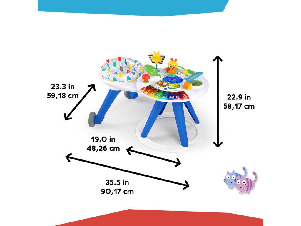 - Chodítko na sezení má 3 výšková nastavení pro dokonalé přizpůsobení se děťátku a pohybuje se v rozsahu 360 stupňů kolem stolu, přičemž zůstává na místě; dostatečně velký stůl určený i pro společné hraní pro více dětí