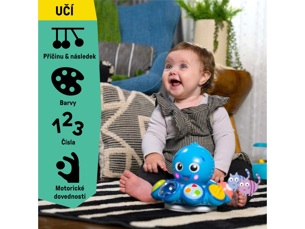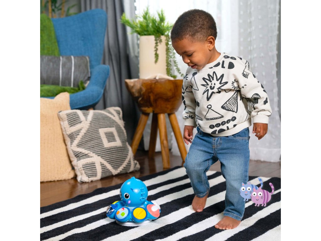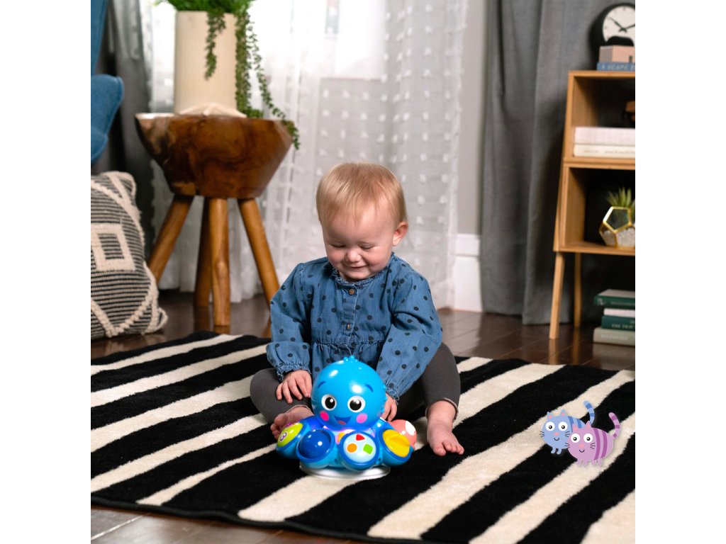 Miminko bude milovat, když se bude chobotnice Opus otáčet, svítit a hrát hudbu, když bude zkoumat chůzi nebo hru na podlaze.
