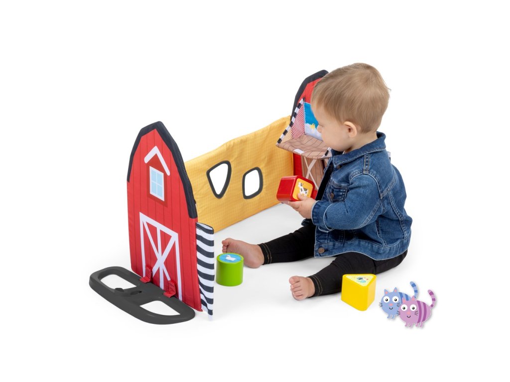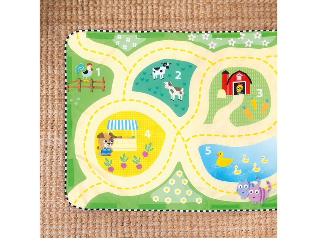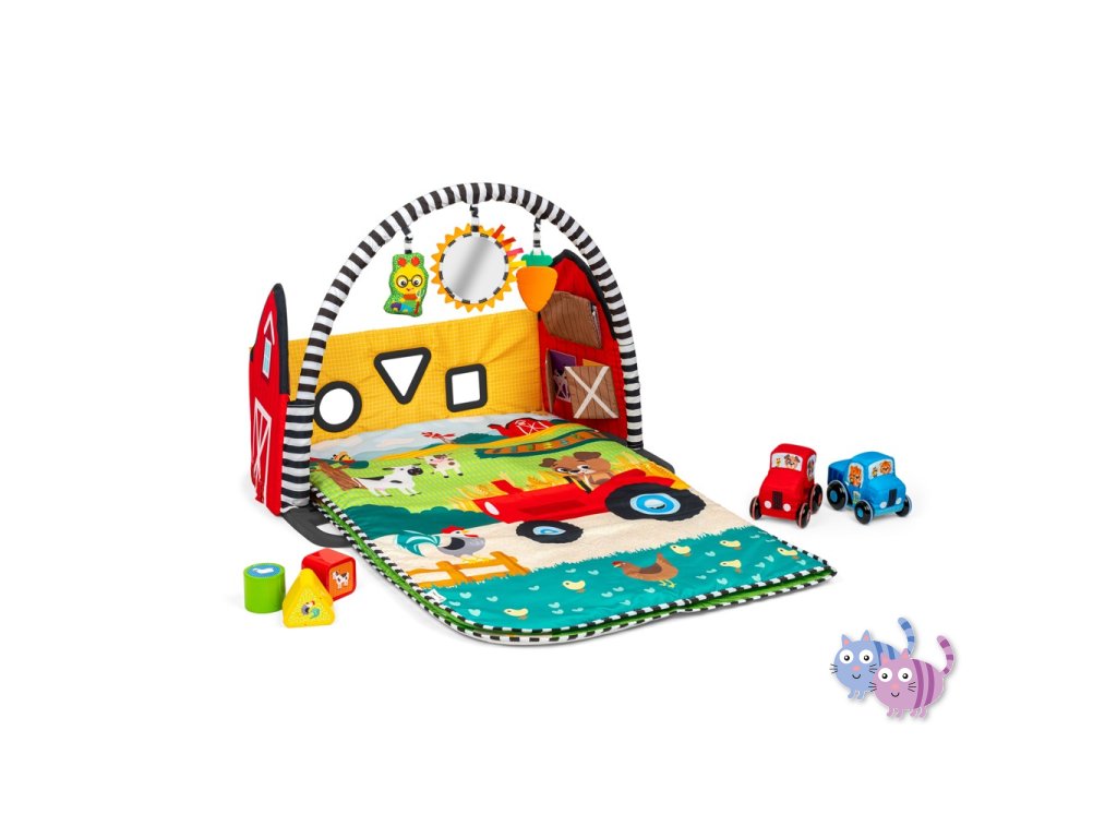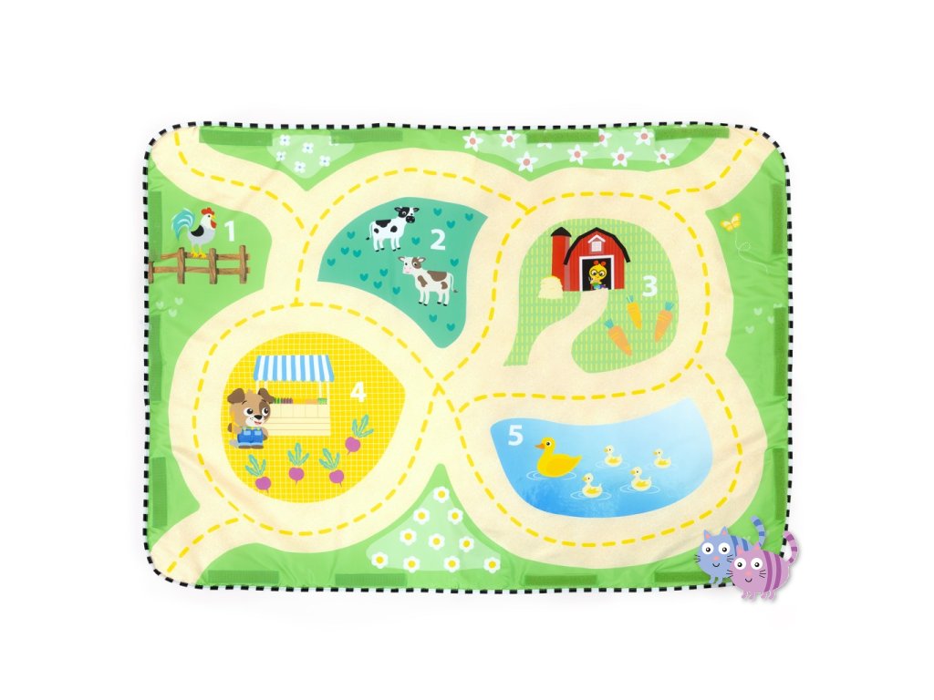- 4 herní režimy: čas na bříšku, hrací deka s hrazdičkou, farma se zábavným tříděním tvarů, cesta pro autíčka