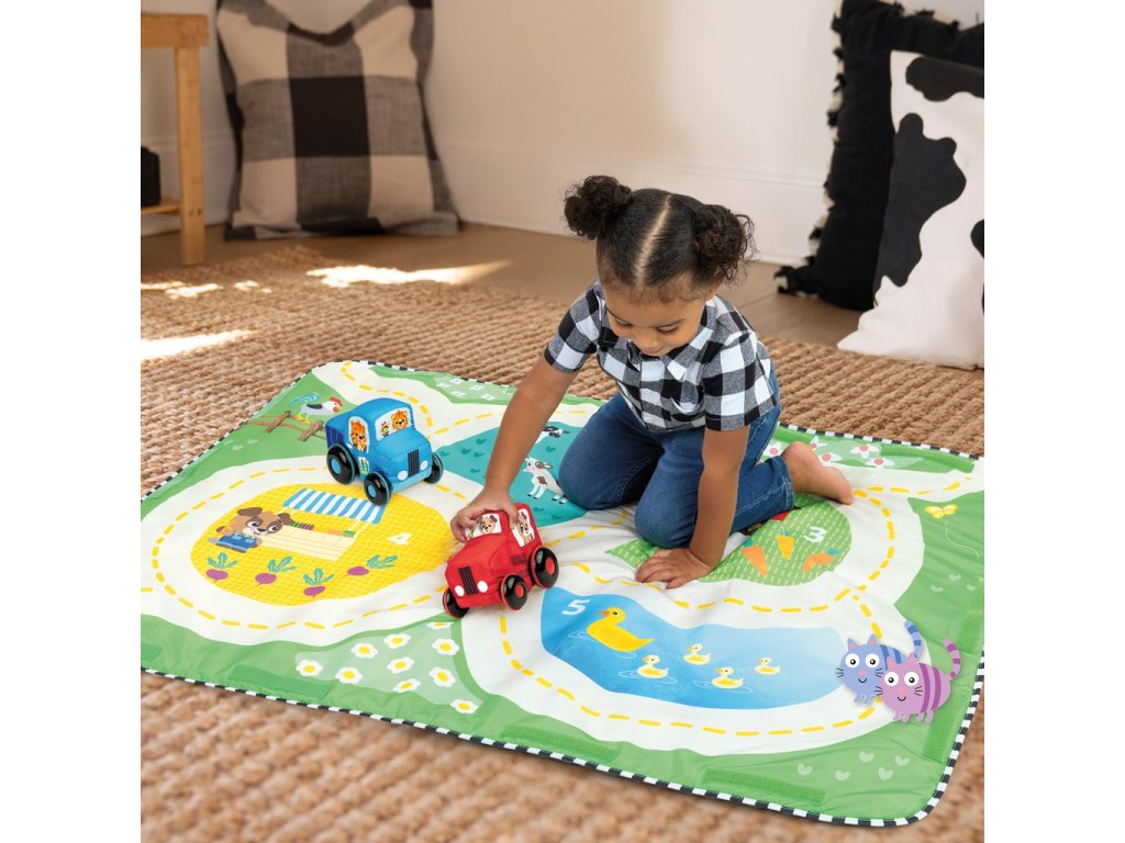 - Hudební hračky: traktor a pickup s 30+ melodiemi a zvuky (vyžaduje 4x AA baterie – nejsou součástí balení)