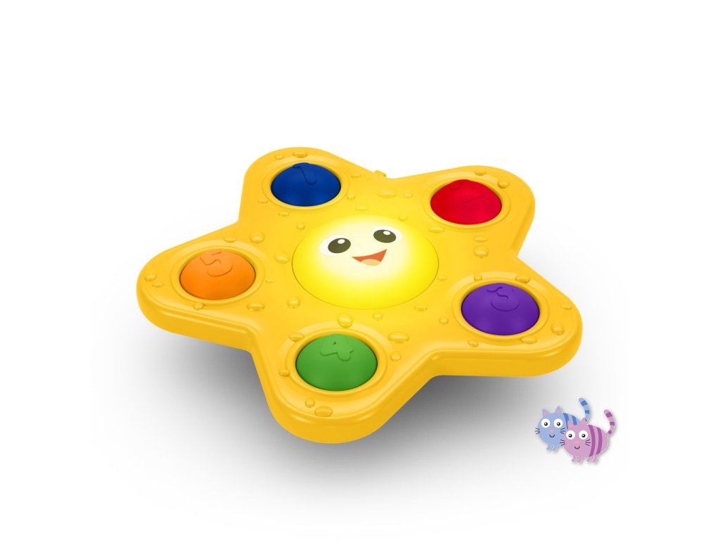 - Když hvězdici roztočíte, uvidíte, jak se její obličej rozsvítí, což podporuje učení příčin a následků.