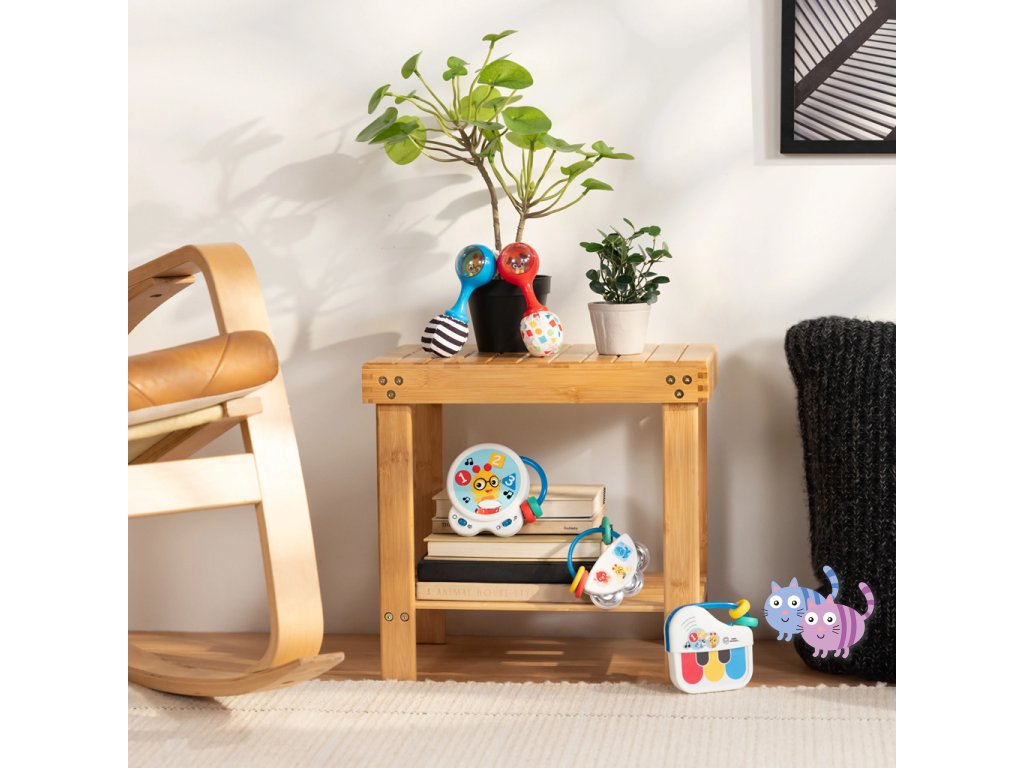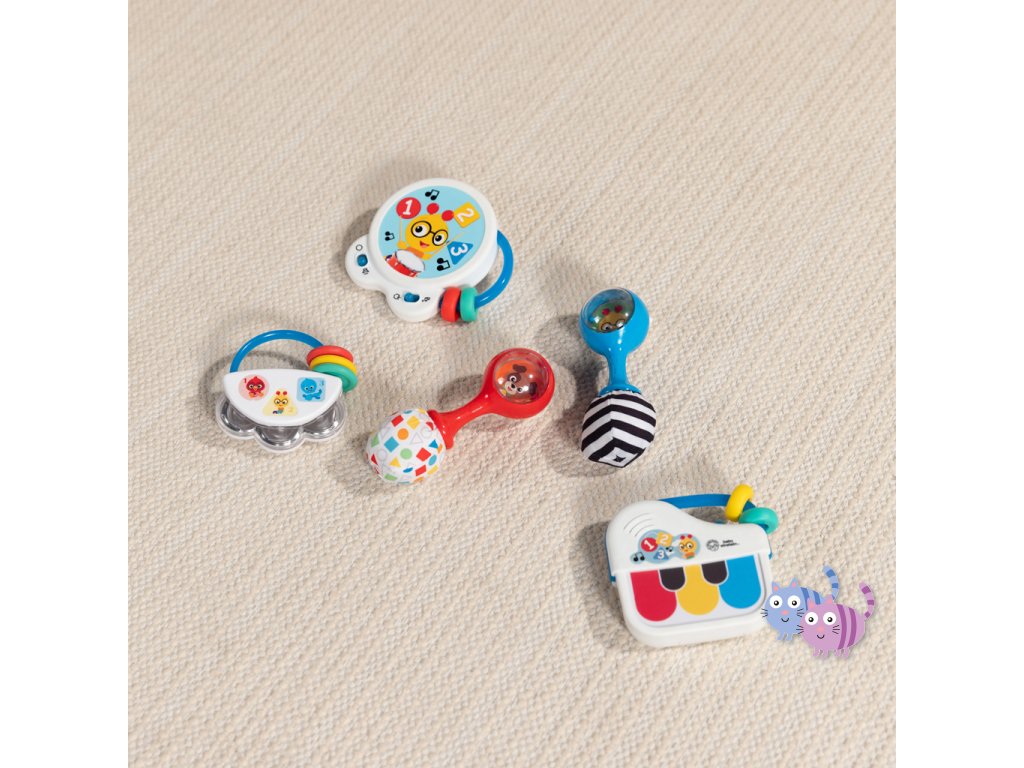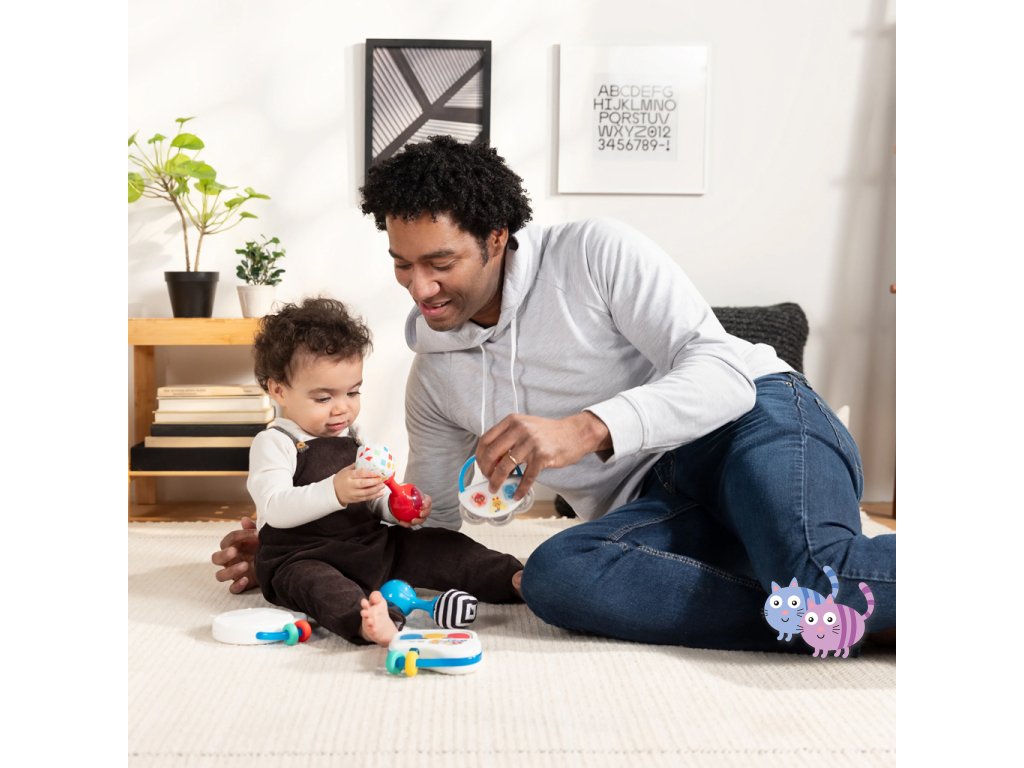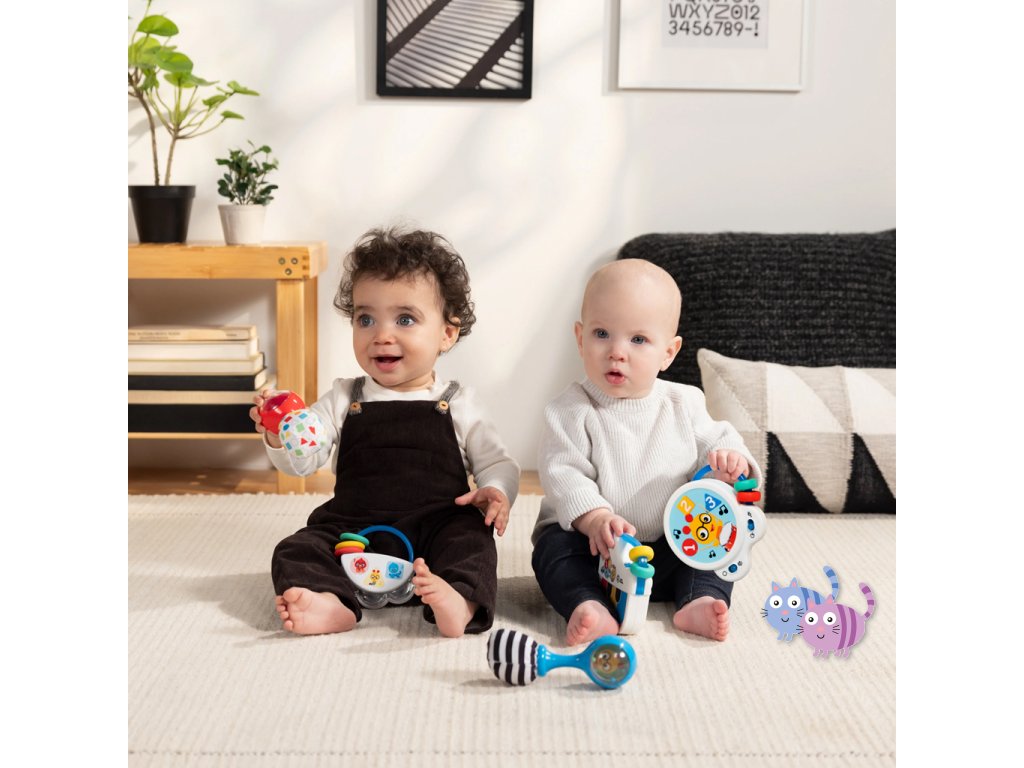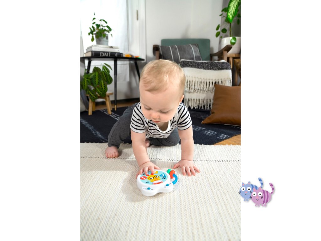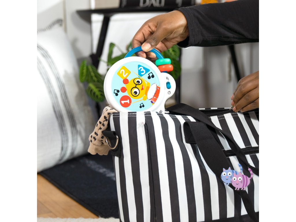 Pomozte miminku objevovat hudbu s hudební hračkou – bubnem Tiny Tempo. Tento lehký a přenosný buben obsahuje 21 reálných zvuků nástrojů, 6 klasických melodií a dvojitý prstenec s korálky, který podporuje hudební objevování, učení se principu příčina–následek a rozvoj jemné motoriky. Díky dvěma herním režimům může miminko v režimu Drum Play vytvářet jedinečné rytmy pouhým klepnutím, nebo si v režimu Melody zahrát spolu se 6 klasickými skladbami. Každé ťuknutí podporuje učení příčina-následek. Hračka s korálky pomáhá rozvíjet obratnost a jemnou motoriku. Barevné nálepky seznamují s barvami, čísly a tvary a oblíbený hudební kamarád Cal the Caterpillar z knih a videí Baby Einstein povzbuzuje miminko při hudebním objevování. Buben je ideální pro hudbu na cestách – je malý, lehký, snadno se drží i třese a podporuje hudební zapojení v kočárku, na cestách i při hře doma. Vyžaduje 2 AA baterie. Čistí se jednoduše otřením.