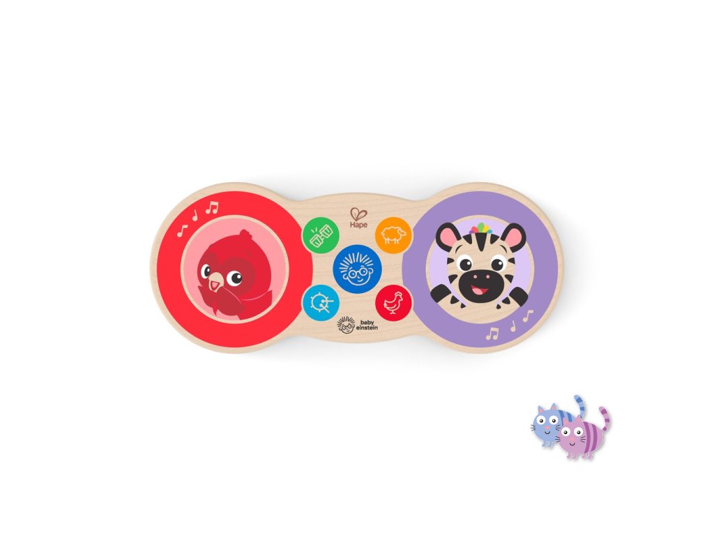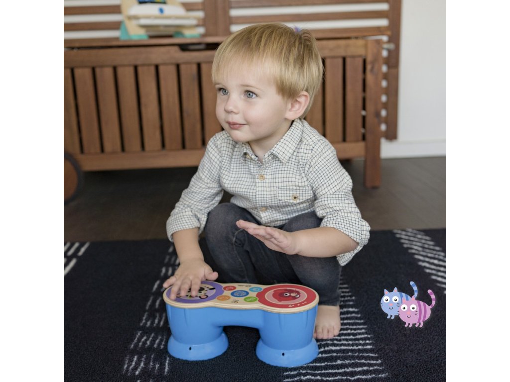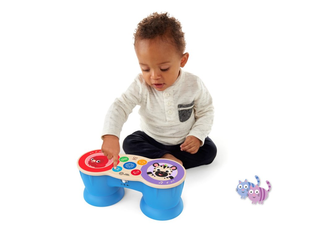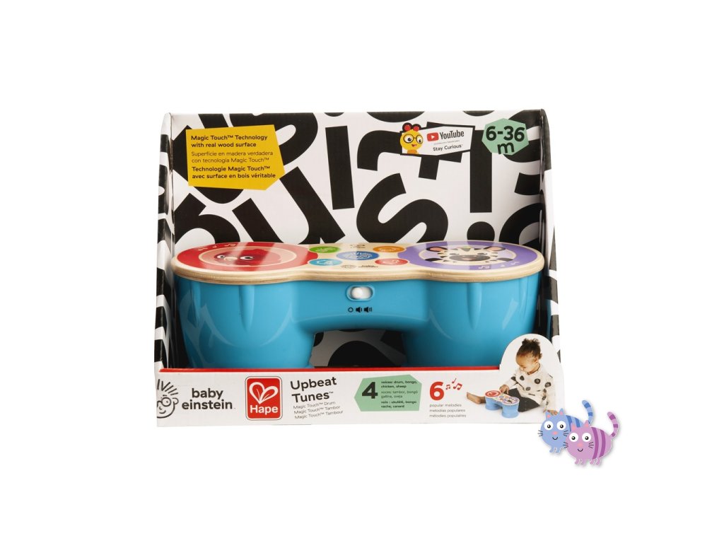 Vychutnejte si vzrušující hudební rytmy spolu s dítětem a bubny Baby Einstein™ Upbeat Tunes™ Magic Touch™. S technologií Magic Touch™ může vaše dítě snadno objevovat klasické melodie na bubnu z pravého dřeva a přepínat mezi bongy, bubny, zvuky kuřátek a oveček. Děti ve věku od 6 měsíců mohou najít svůj rytmus a hrát své vlastní písničky, nebo stisknutím Einsteinova tlačítka aktivovat 6 nastavených populárních melodií. Tato hračka batolatům pomáhá rozvíjet motorické dovedností a tvůrčí sebevyjádření.