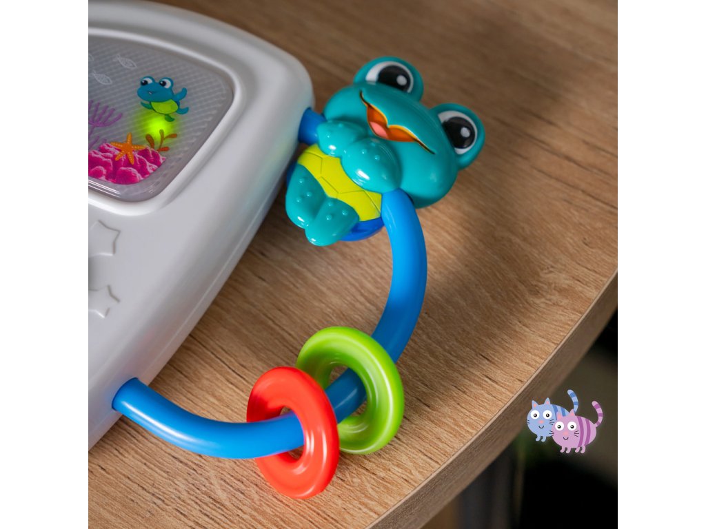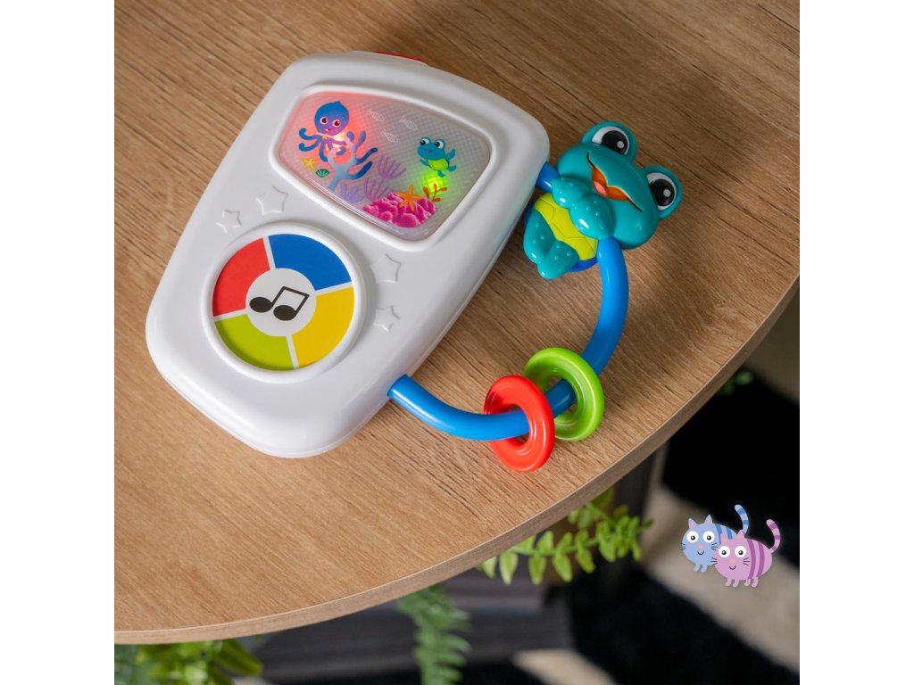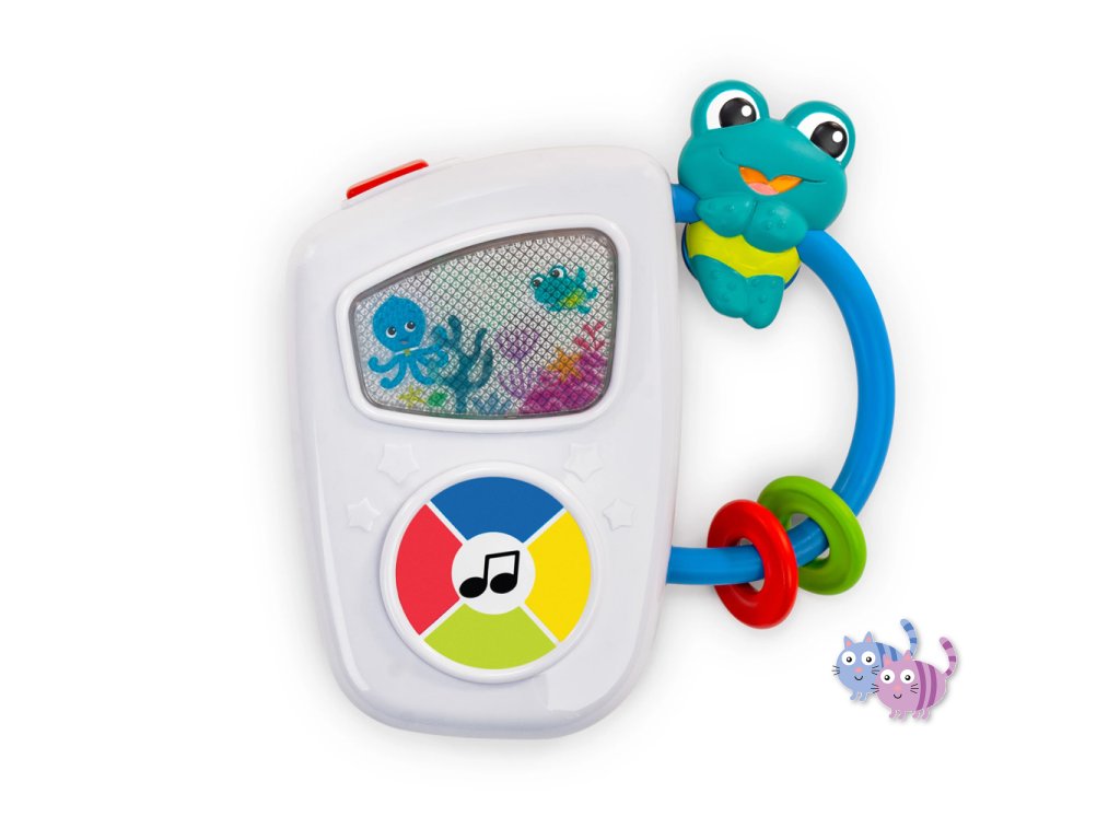 Objevujte poutavá světla a melodie s hudební hračkou Baby Einstein Ocean Explorers Maritime Melodies. Malý přenosný přehrávač hudby zabaví miminko doma i na cestách při každém stisknutí tlačítka. Podporuje chápání příčiny a následku, kdy dítě stiskne tlačítko přehrávače a slyší 6 melodií, přičemž barevná světla tančí do rytmu. Obsahuje 3 písně z nového pořadu Baby Einstein Ocean Explorers („A Closer Look“, „Jellyfish Wiggle“ a „Still Learning“). Hračka podporuje rozvoj jemné motoriky pomocí dvou barevných korálkových kroužků. Lehce uchopitelná rukojeť s postavičkou želvy Neptuna umožňuje miminku užít si tuto interaktivní hračku doma i na cestách. Jednoduché čištění. Vyžaduje 2 AA baterie.