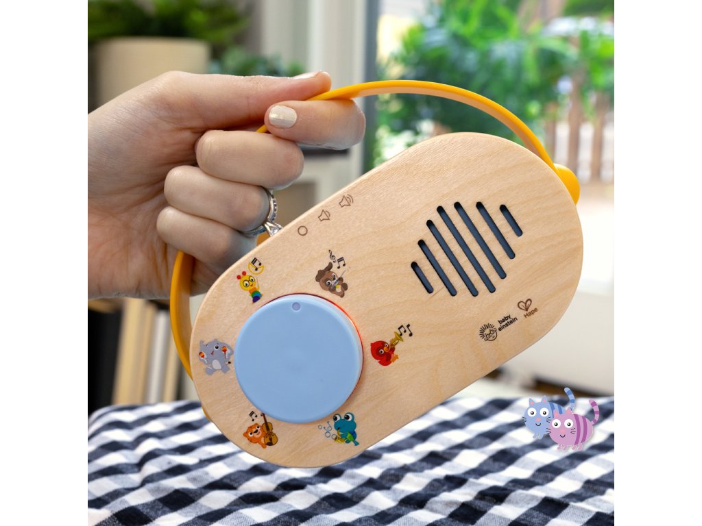 - Rádio Baby Einstein + Hape Discovery Radio je multisenzorická hudební hračka inspirovaná Montessori, která pomáhá dětem ve věku 6 měsíců a více objevovat každodenní zvuky, hudbu a světla.