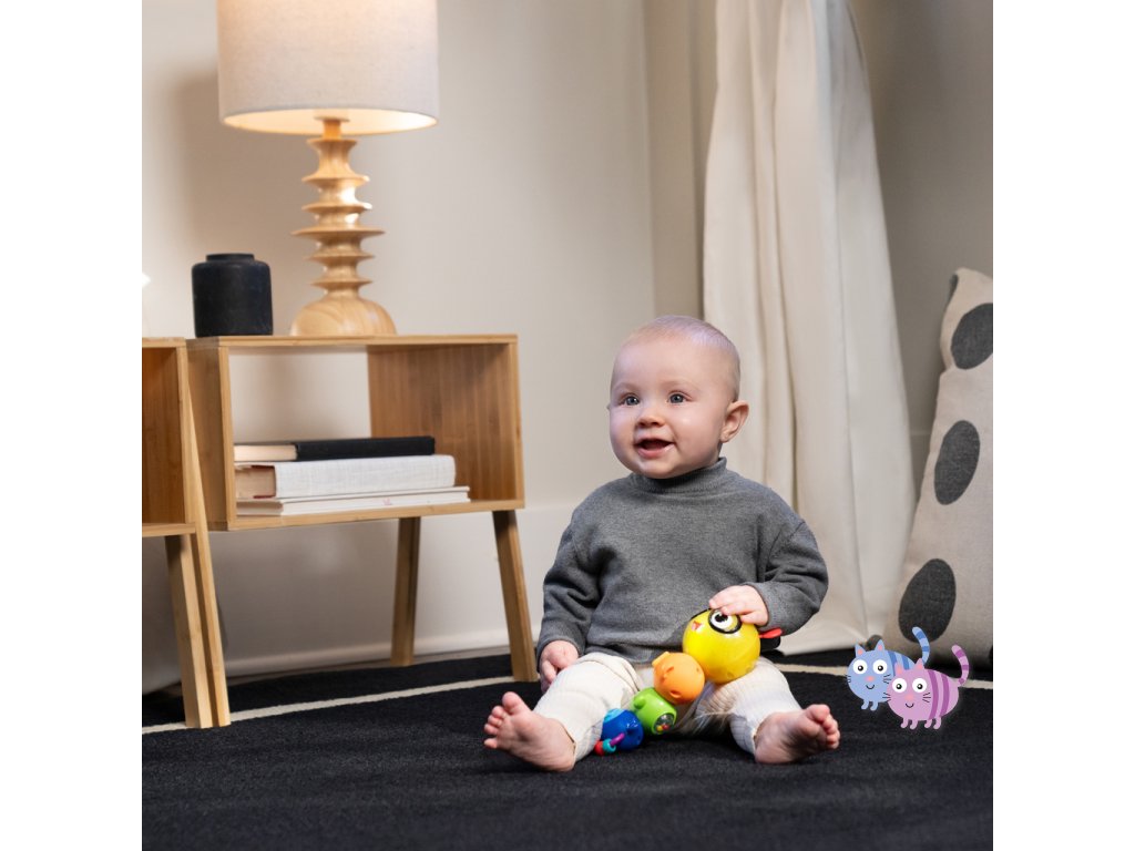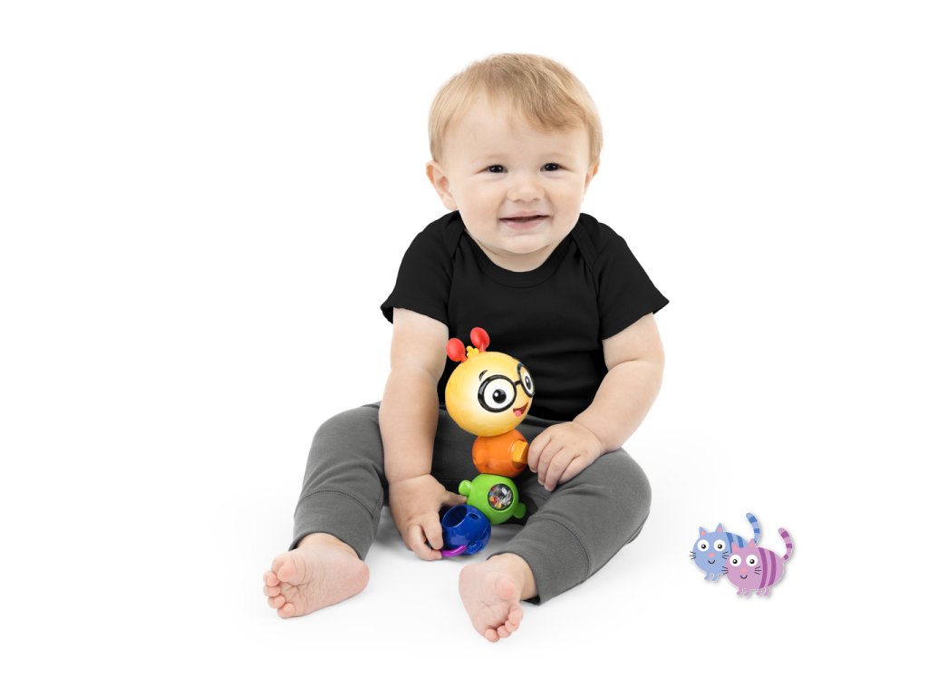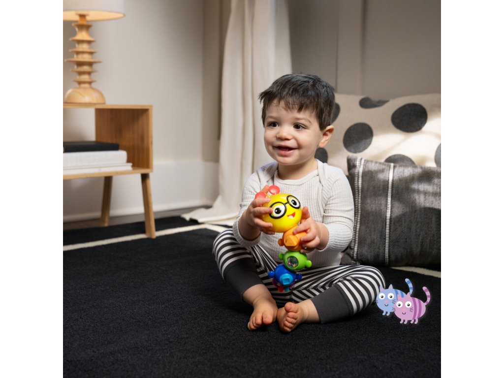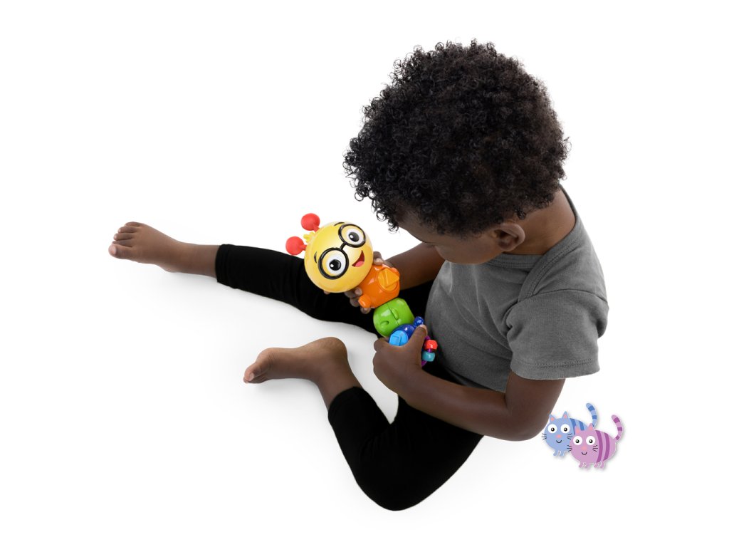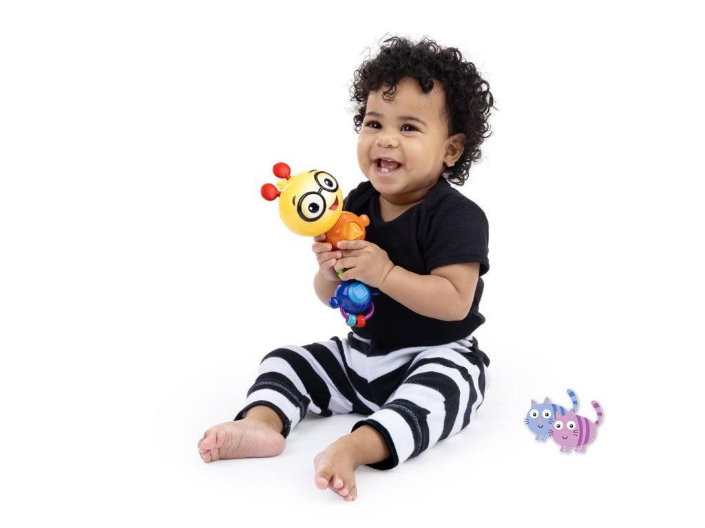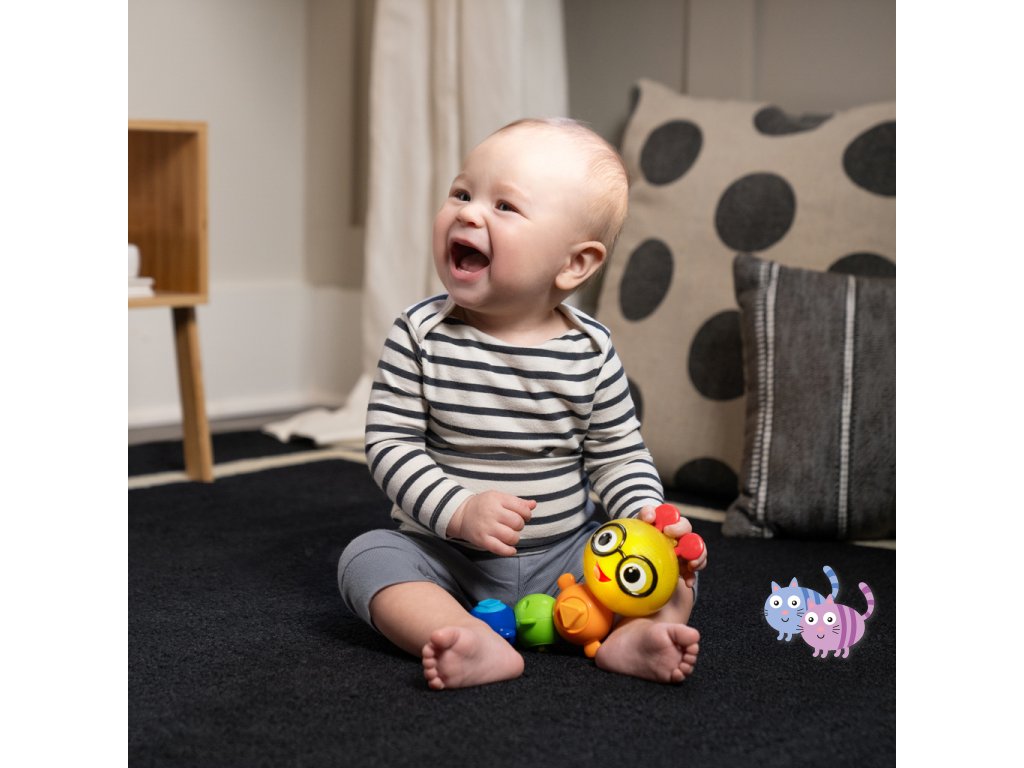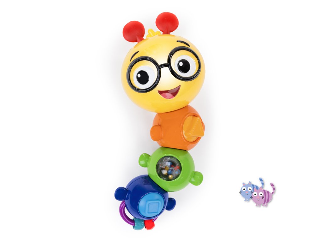 - Senzorická hračka Baby Einstein Twist-a-Pal Cal učí jemnou motoriku a princip příčiny a následku, kdy dítě otáčí každý segment a objevuje hudbu, světla a různé textury.