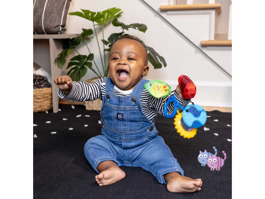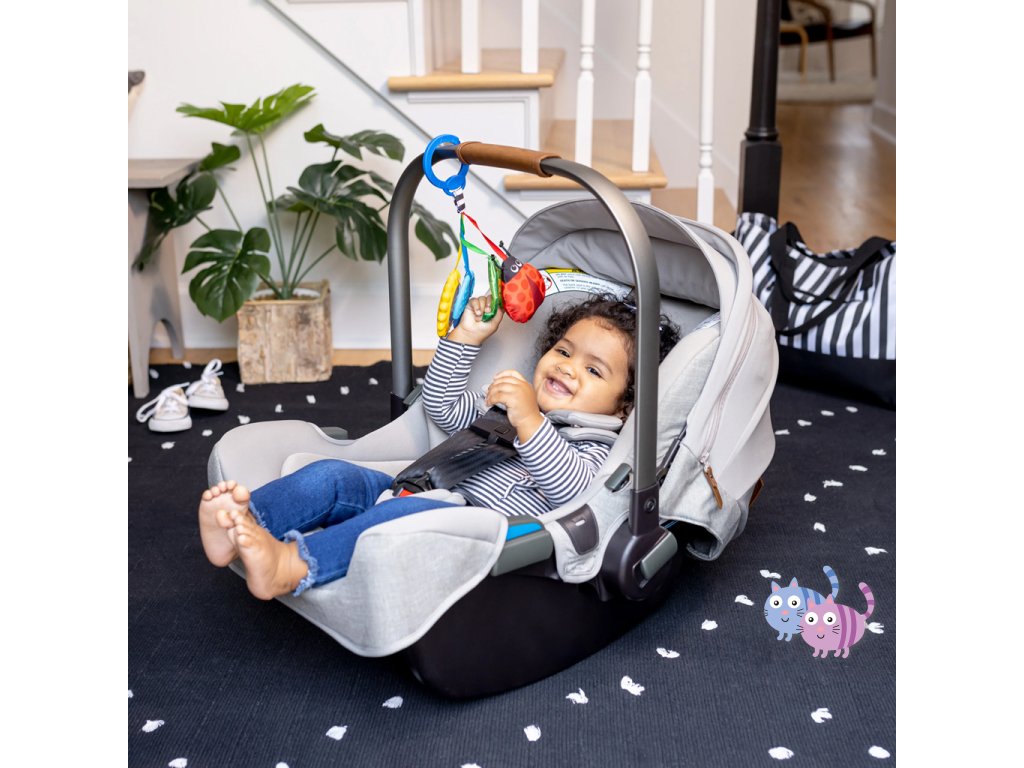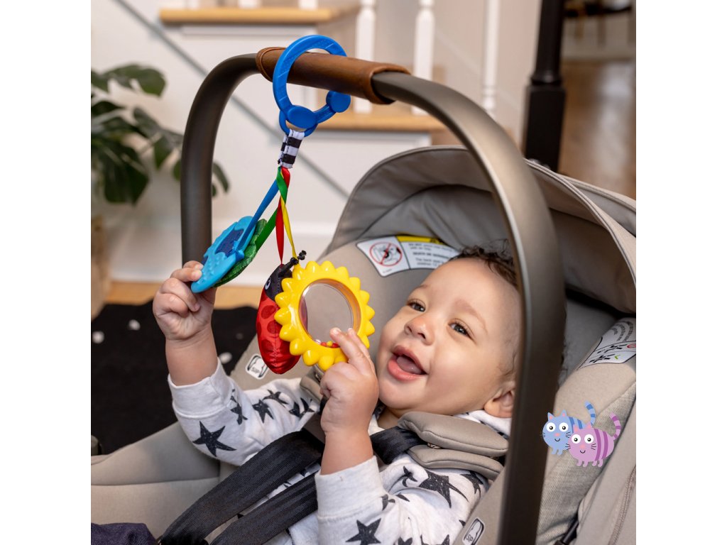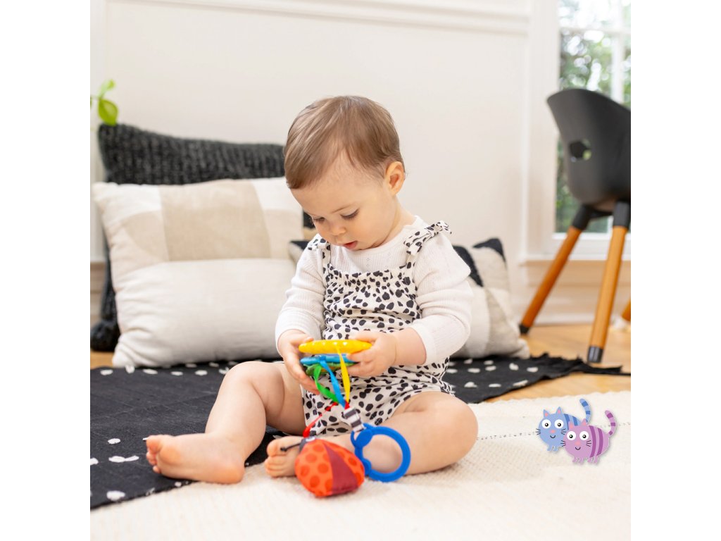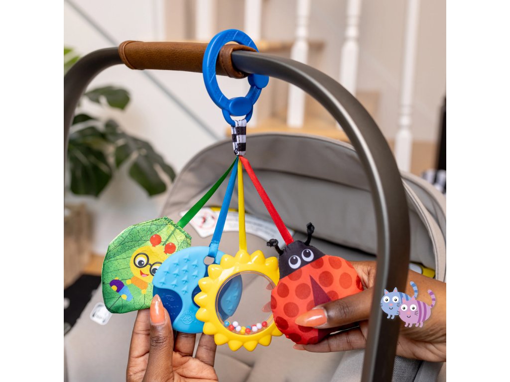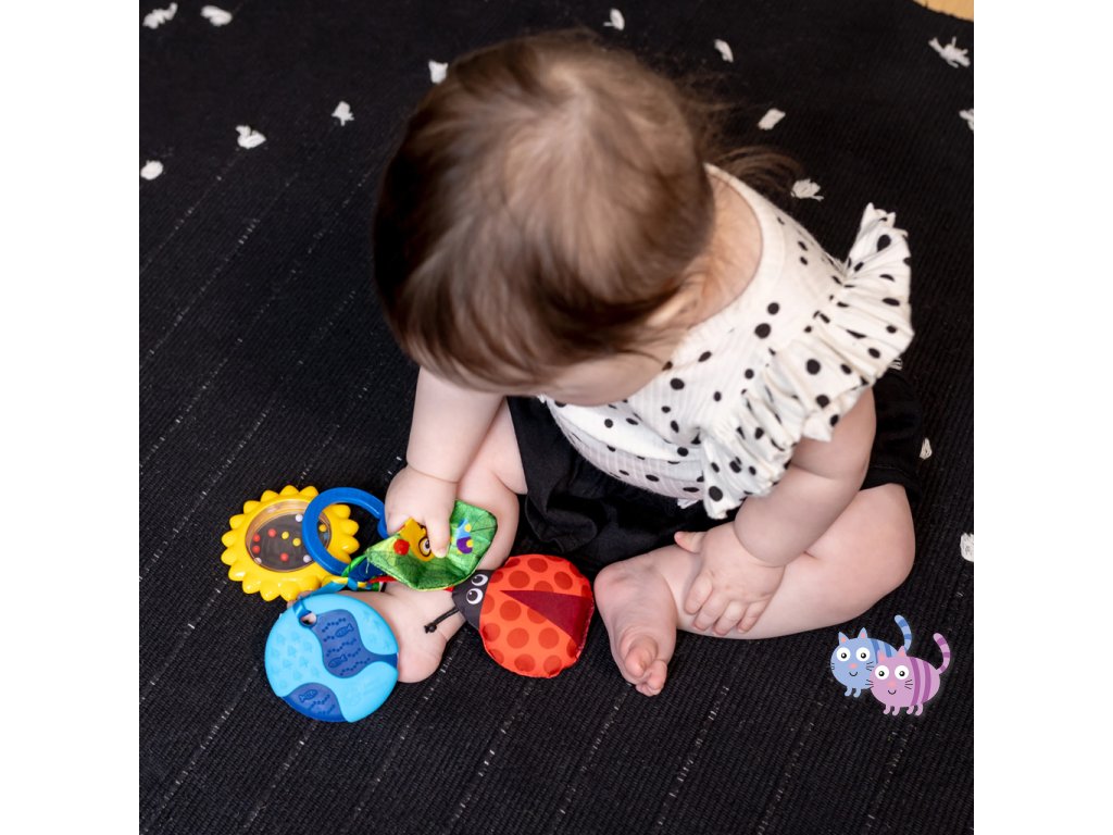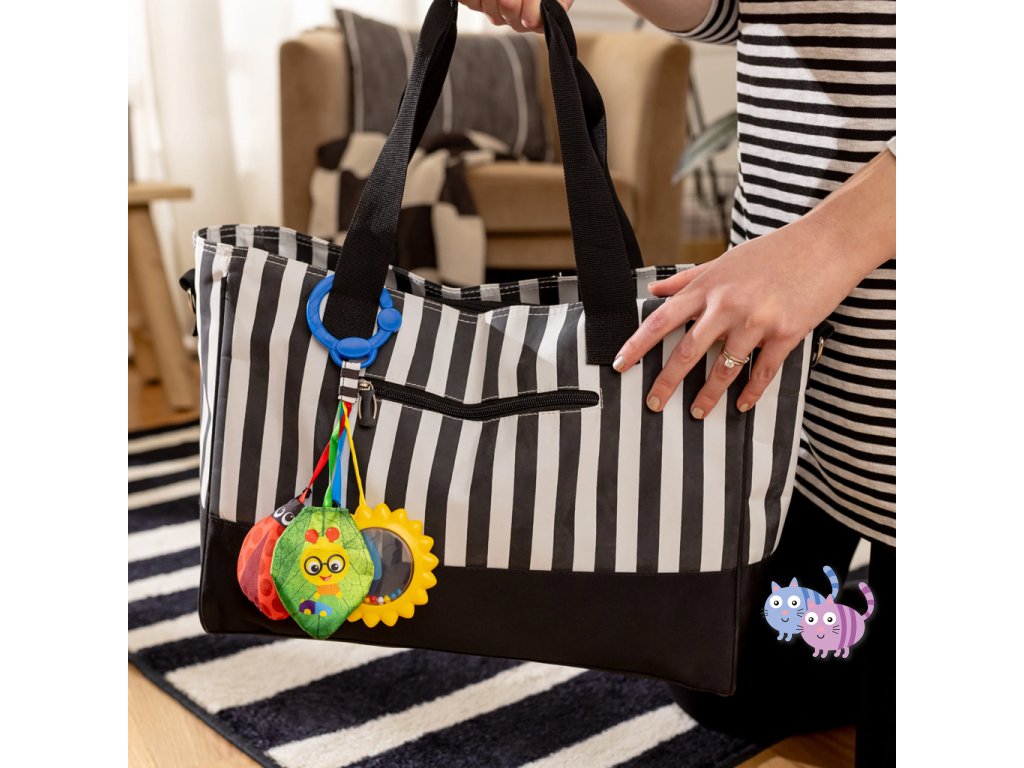 - Pro děti od narození; pomocí C-klipu lze sadu hraček jednoduše připevnit na přebalovací tašku nebo nosič pro zábavu na cestách.