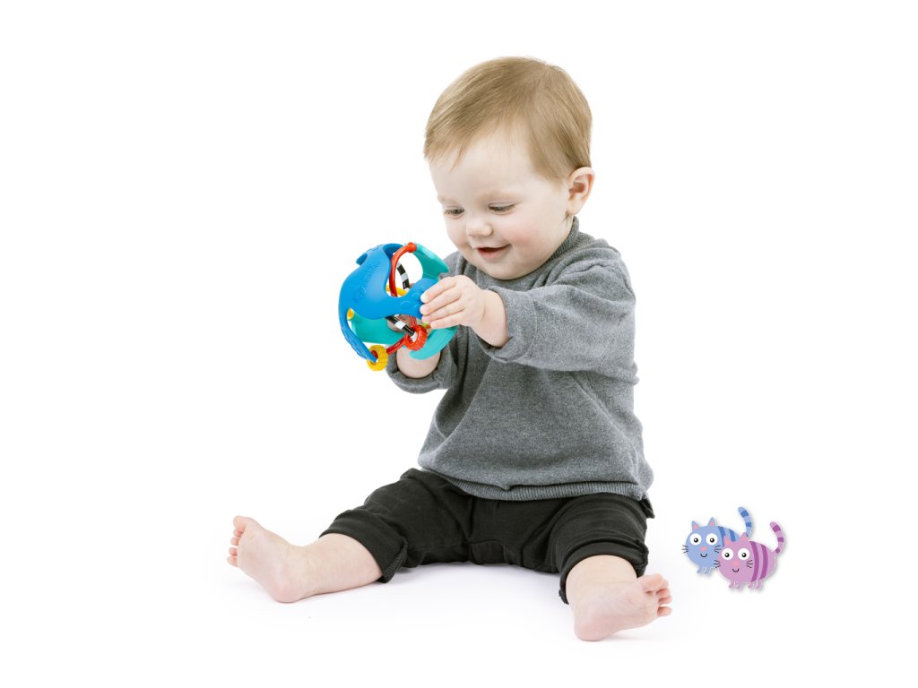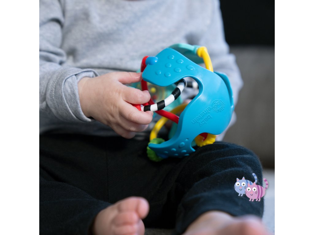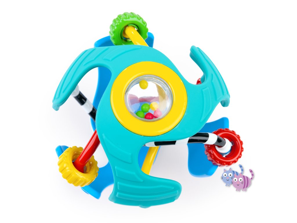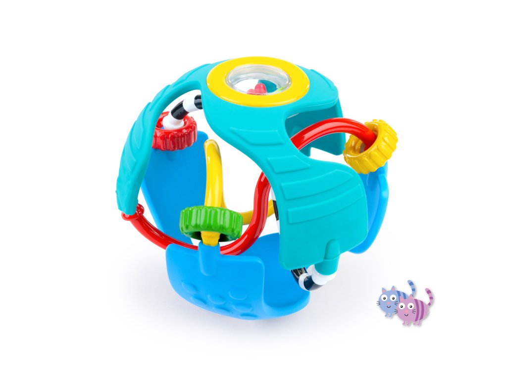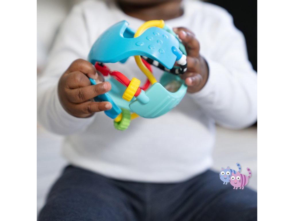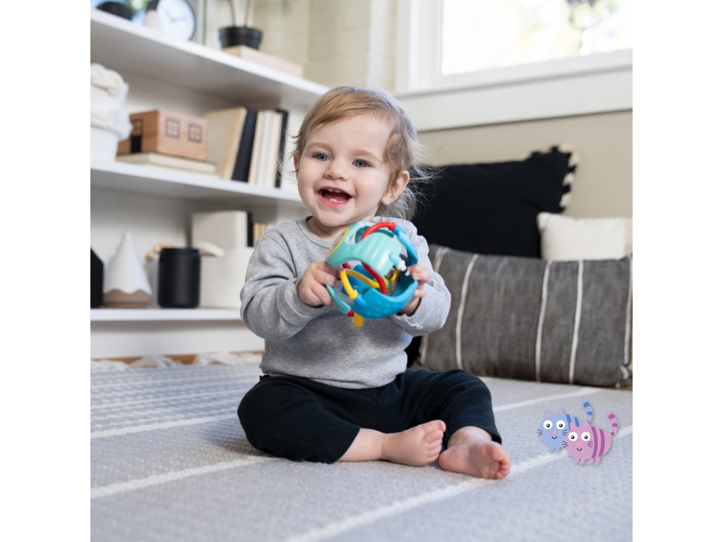 Třeste a objevujte! Senzorická hračka je ideální hračkou pro děti od 3 měsíců, které začínají objevovat svět přes dotek, zvuk a barvy. Tento míček lehce padne do držadla a nabízí řadu smyslových podnětů, které podporují vývoj miminka a učení hrou. Tři korálkové dráhy pomáhají rozvíjet jemnou motoriku a různé textury jsou ideální pro hmatové objevování. Miminka milují sledování pohybujících se korálků a učí se principu příčina-následek, když každé zatřesení vytvoří zvuk! Zářivé barvy a výrazné vzory podporují zrakový vývoj. Hračka byla nezávisle testována a schválena z hlediska bezpečnosti. Objevování nikdy nebylo zábavnější!