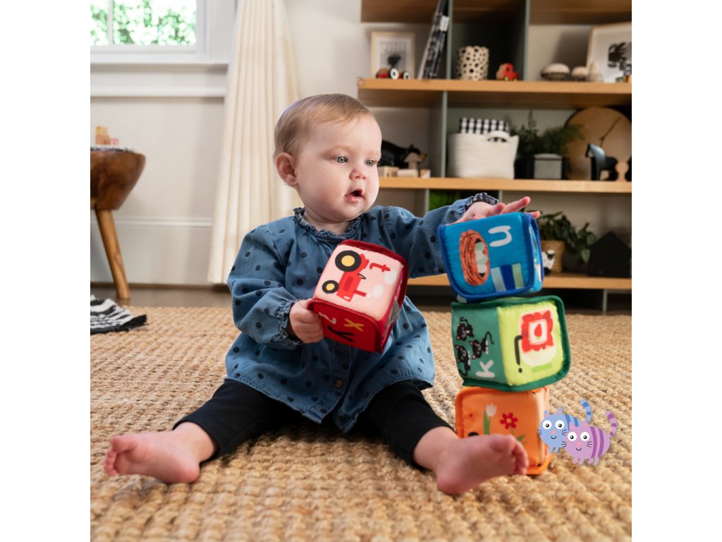 - Navrženo pro malé rukojeti – lehké, měkké kostky jsou ideální pro uchopení, házení a skládání