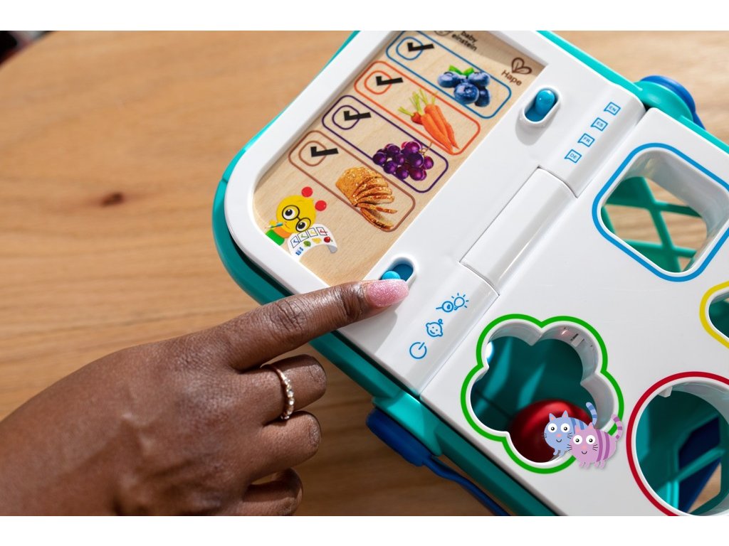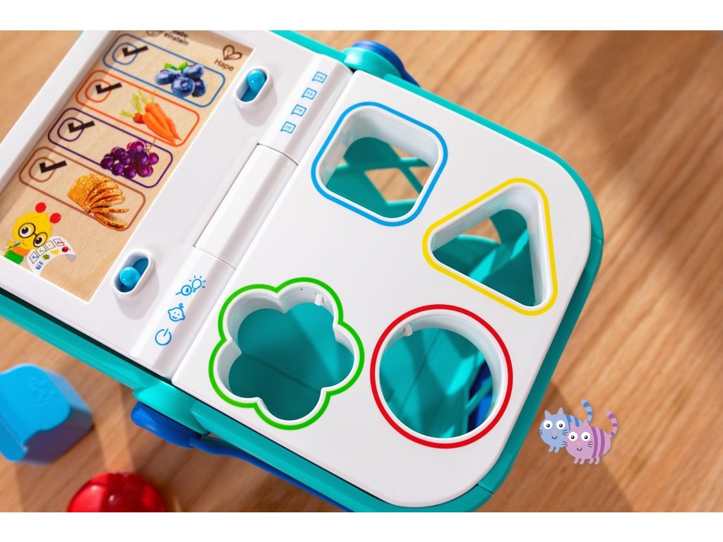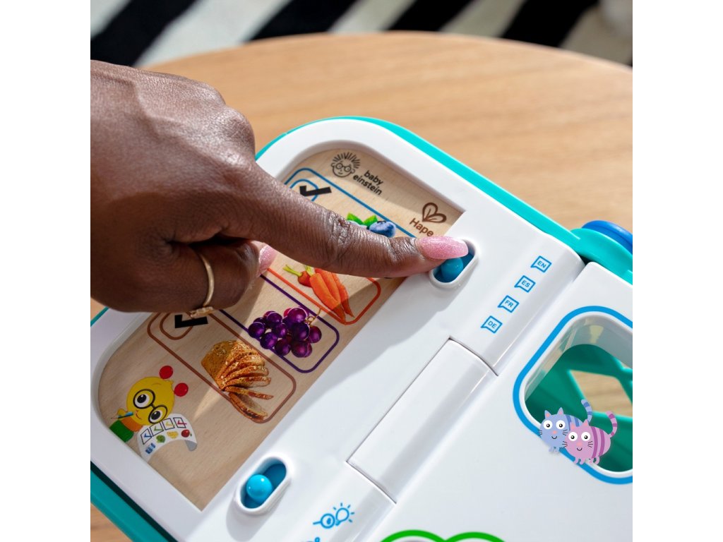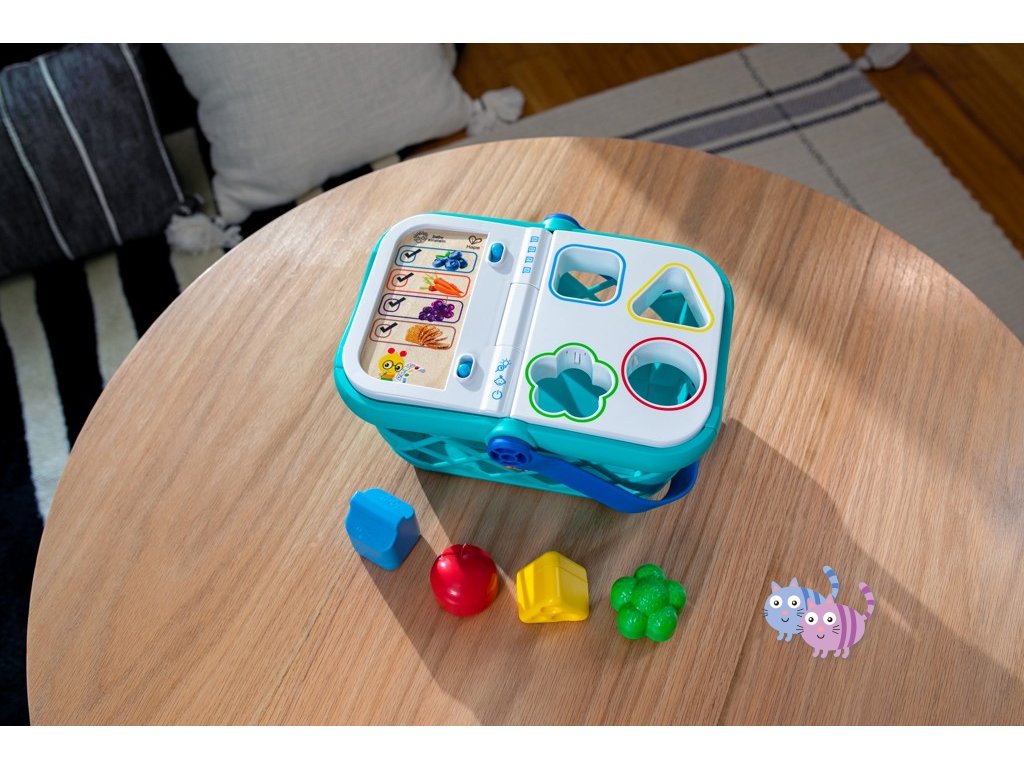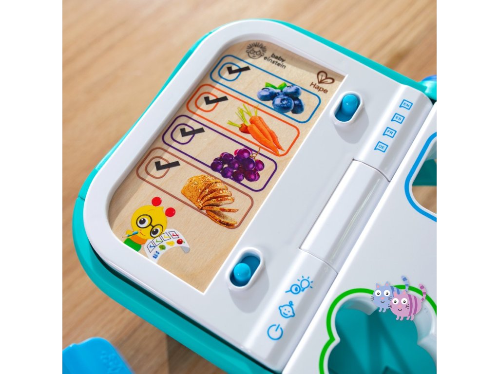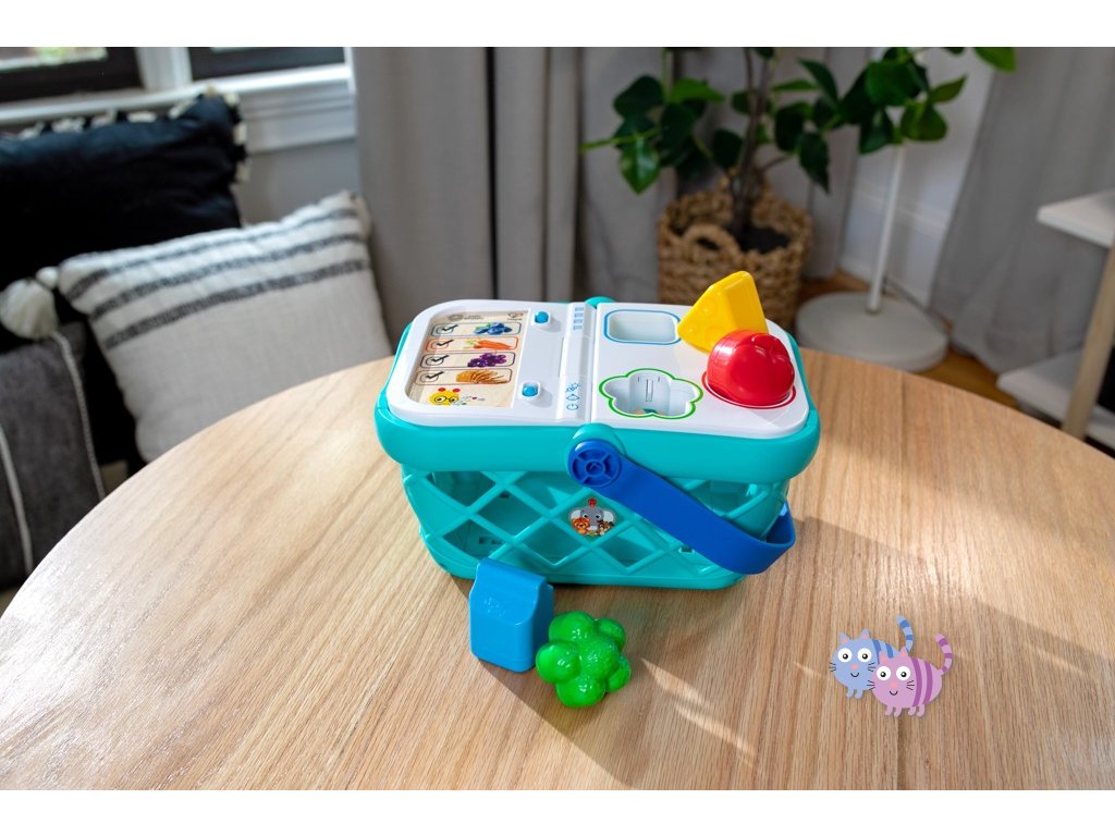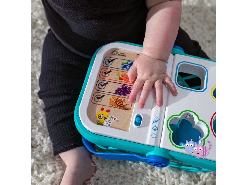 - Pomozte dítěti naučit se skutečné koncepty, jako jsou tvary, barvy a potraviny, s nákupním košíkem od Baby Einstein Magic Touch.