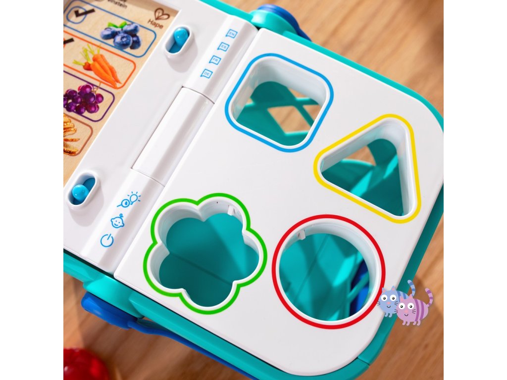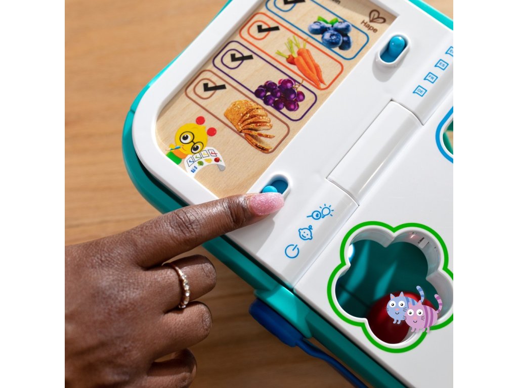 - Klepnutím na potravinu na ultra citlivém povrchu Magic Touch uslyšíte hudbu, zvuky nakupování a fráze.