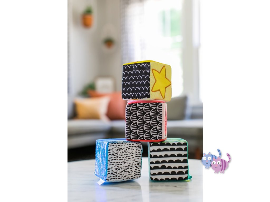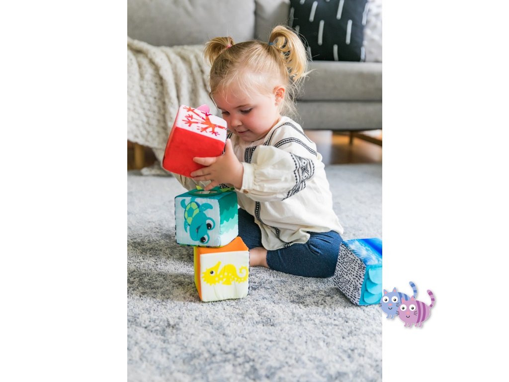 - 4 měkké kostky s 3D designem