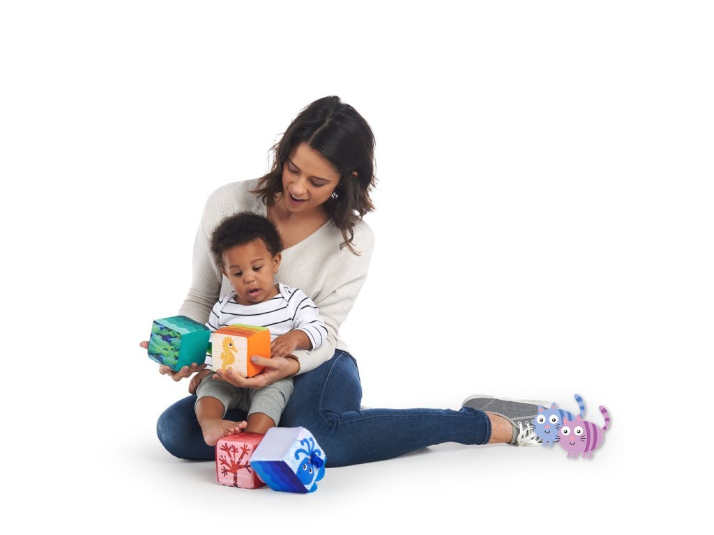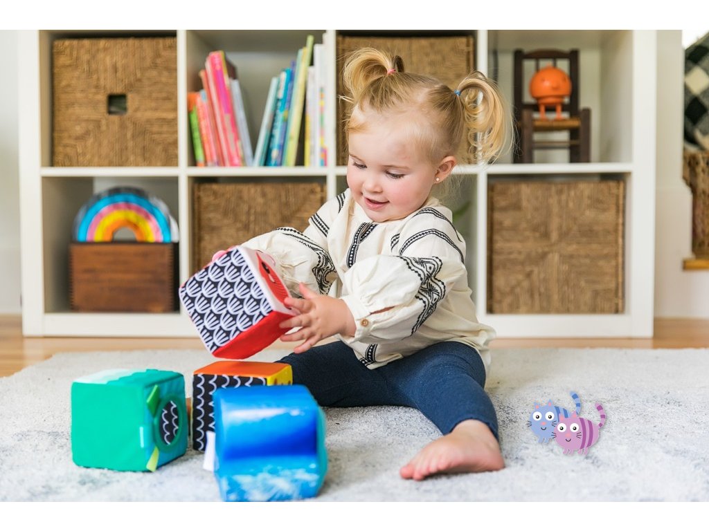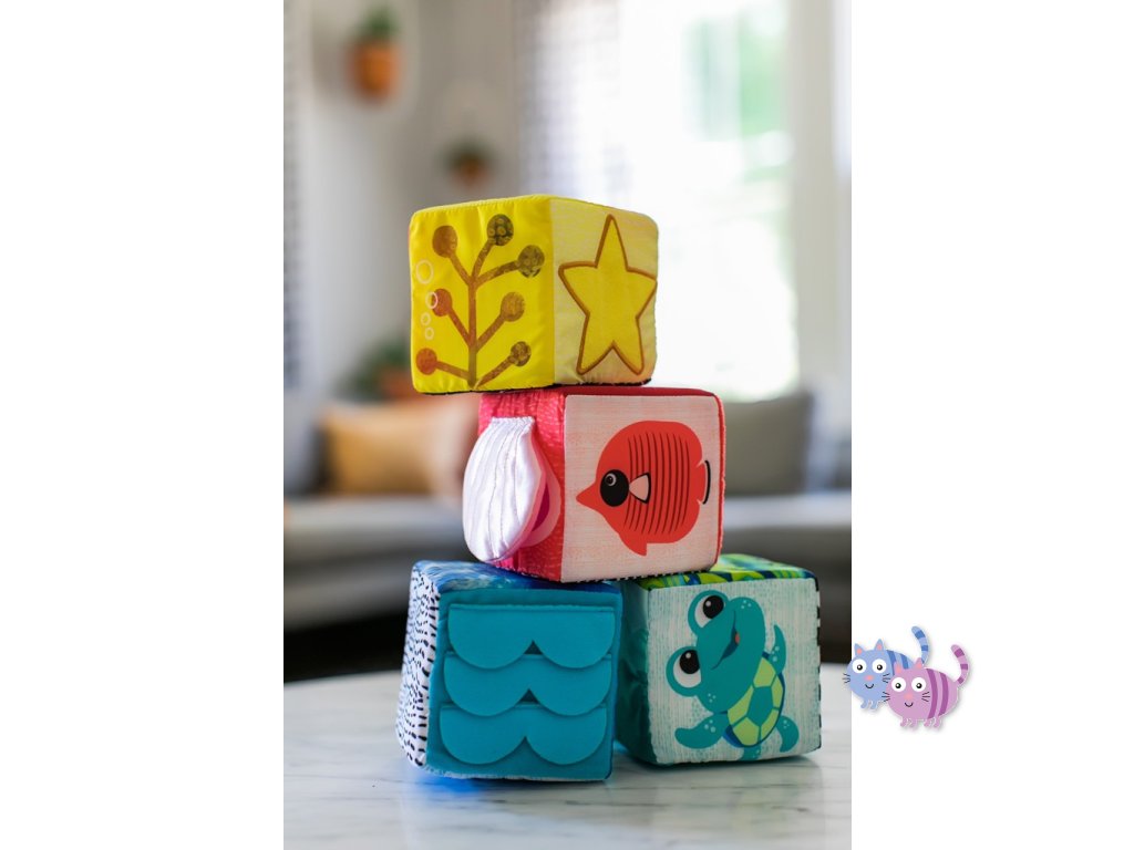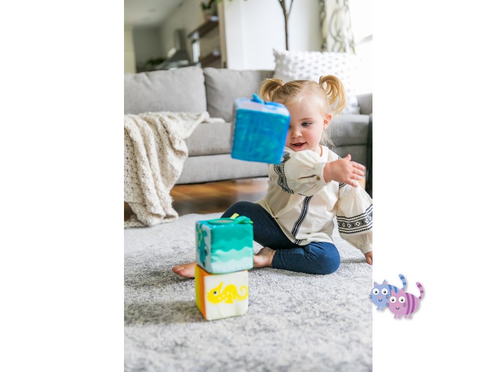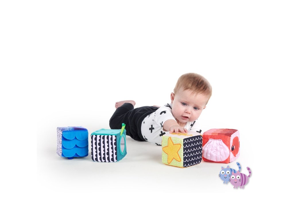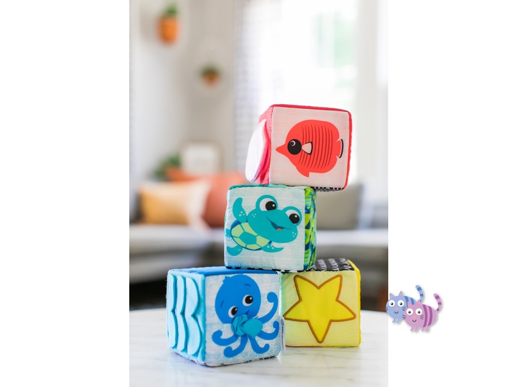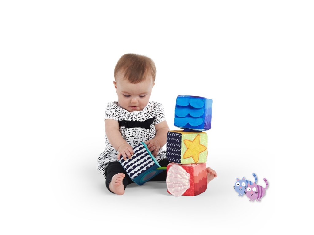 Měkké kostky Baby Einstein Explore & Discover jsou určeny pro malé ručky, které je mohou mačkat, skládat, házet a převracet. Každá kostka je samostatná hračka s jedinečnými multisenzorickými aktivitami, které si vaše děťátko zamiluje. Objevte bezpečné zrcátko pro miminka, které je pod vykukujícím sluníčkem Zatáhněte přátelskou žabku za nohu a sledujte, jak vyskočí Tyto stohovací hrací kostky jsou vyrobeny tak, aby zaujaly a zabavily miminko a jejich měkký povrch z nich činí ideální aktivitu pro bezpečné hraní.S touto sadou měkkých kostek si dítě postaví věž plnou zábavy.