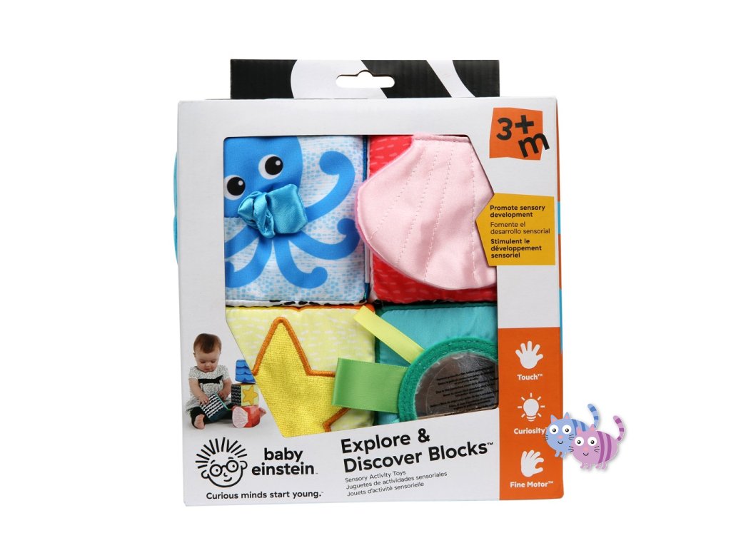 BABY EINSTEIN Kostky látkové set 4ks Explore&Discover 3m+
