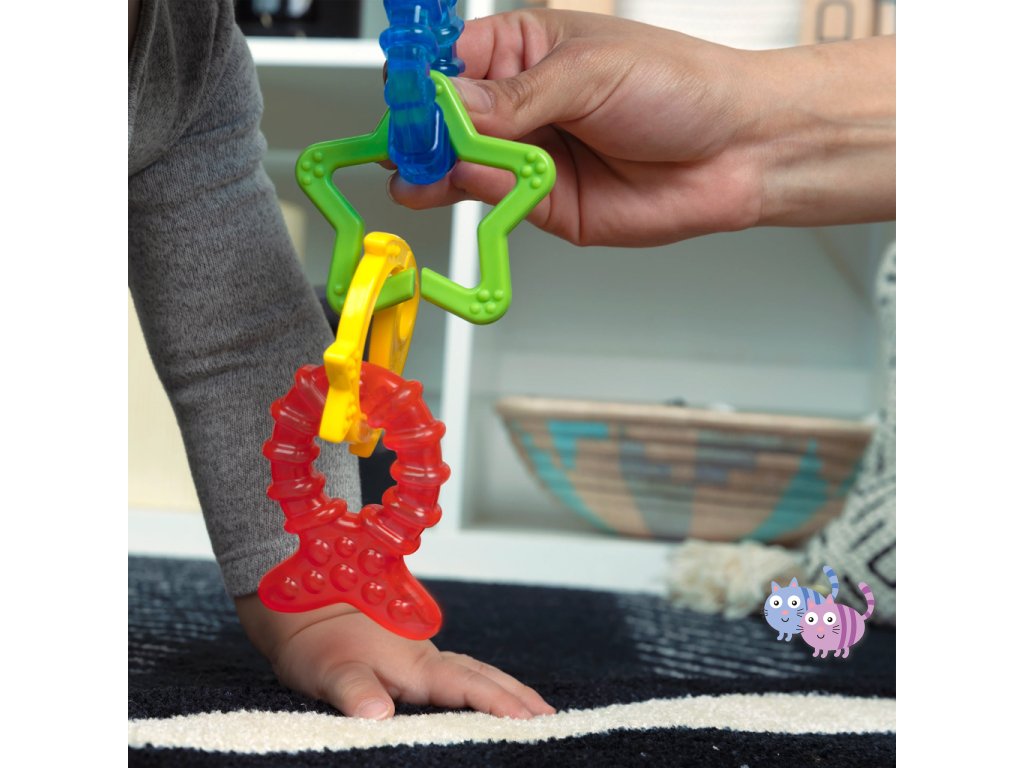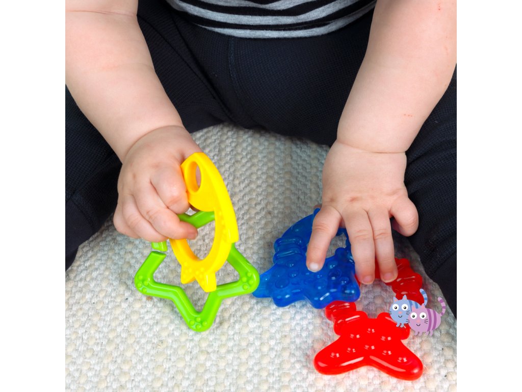 Ulevte dětským bolavým dásním a zaveďte rané smyslové dovednosti se soupravou hraček Baby Einstein Ocean Explorers Cool Critters. Tato barevná souprava 4 velkých kousků s texturou zklidňuje bolavé dásně a podporuje smyslové objevování, když děťátko zkoumá každé dudlík ve tvaru zvířátka. Snadno uchopitelná souprava obsahuje 2 vodou naplněné, chladitelné kousátka pro úlevu při kousání a 2 texturované kousátka, která soupravu spojují. Neobsahuje BPA.