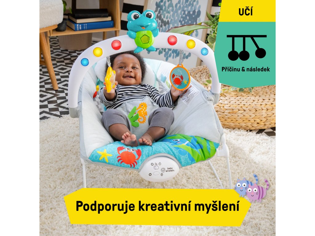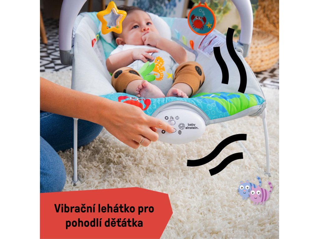 BABY EINSTEIN Lehátko hudební vibrační se světly Kick to It Neptune do 9 kg