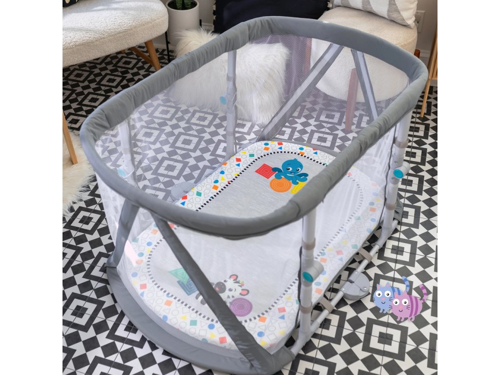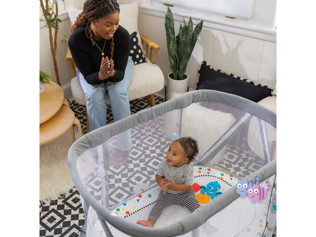 Přeměňte tuto postýlku na aktivní hrací podložku a později na dětskou ohrádku, jak vaše děťátko roste!