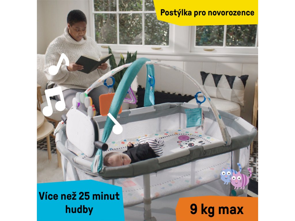 BABY EINSTEIN Postýlka s ohrádkou na hraní a klavírem 3v1 Kick & Snooze™ 0m+