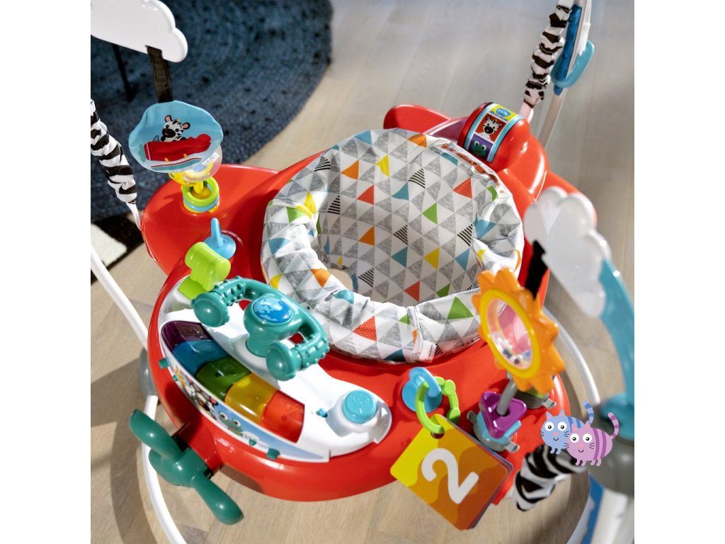 - skákadlo Baby Einstein Ocean Explorers Airplane Adventure s motivem letadla, odměňuje skoky dítěte hudbou a světlem a rozvíjí tak jeho hrubou motoriku