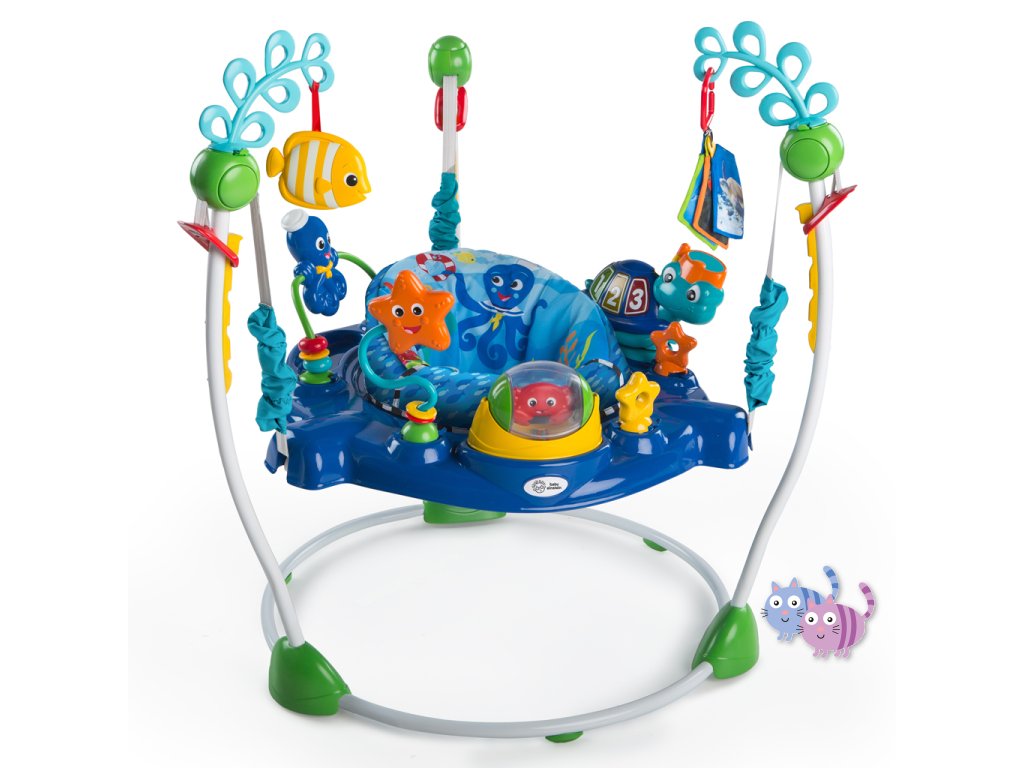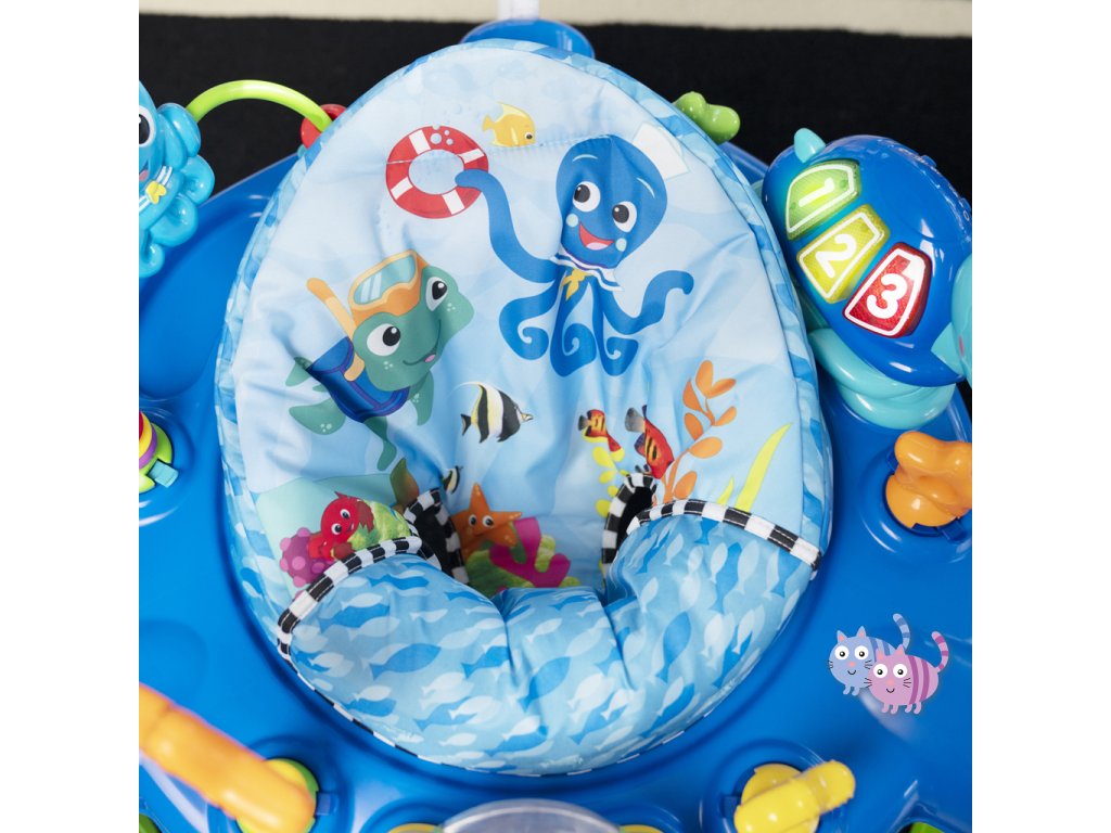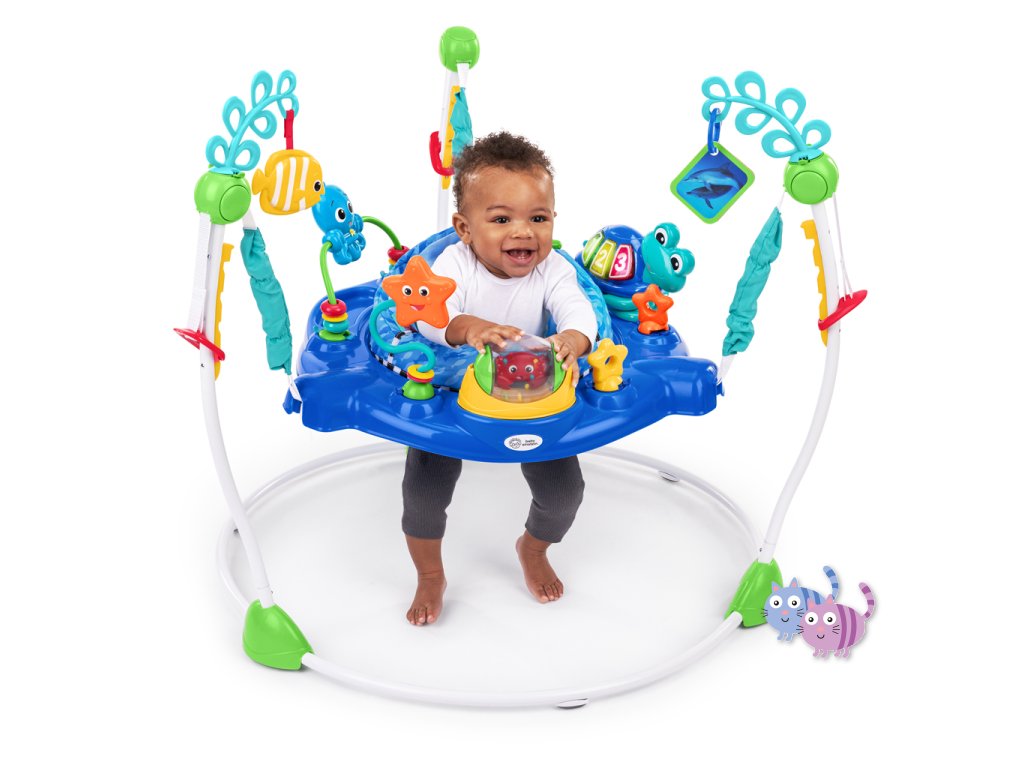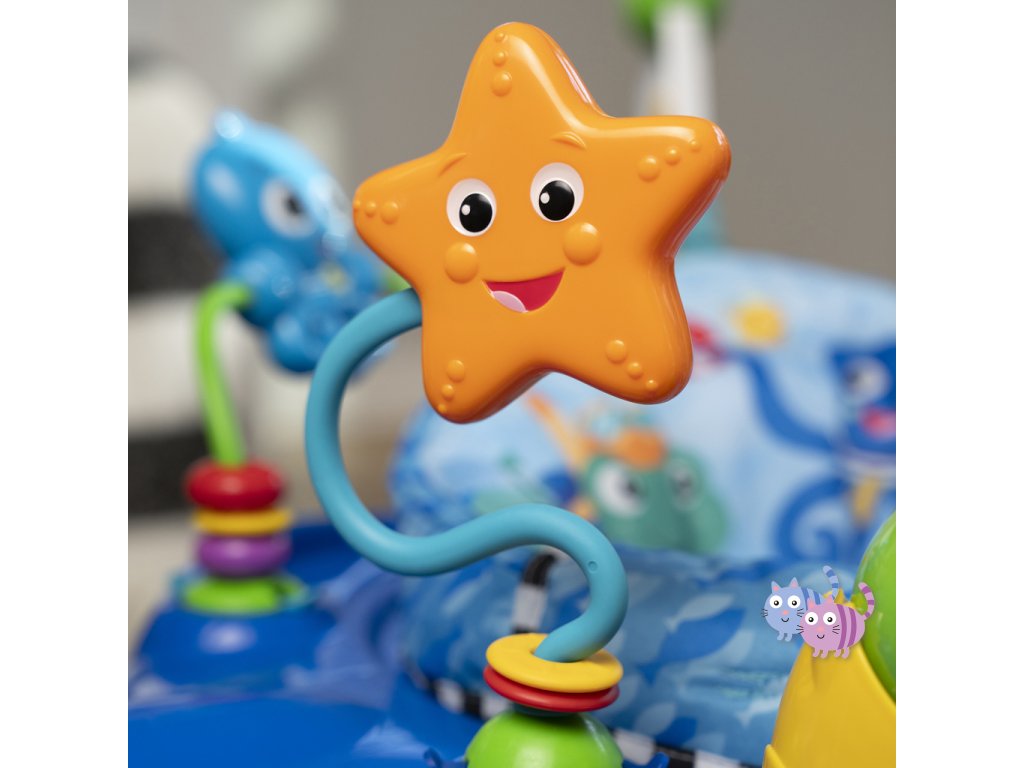- Skákadlo 2v1 pro děti od 6 měsíců do 1 roku, které podporuje smyslové objevování světýlky, hudbou a zvuky oceánu.
