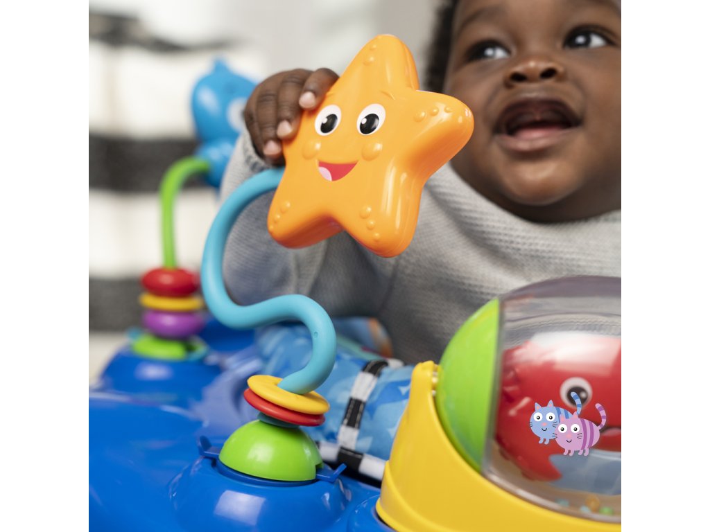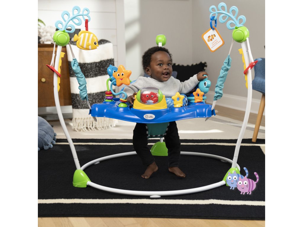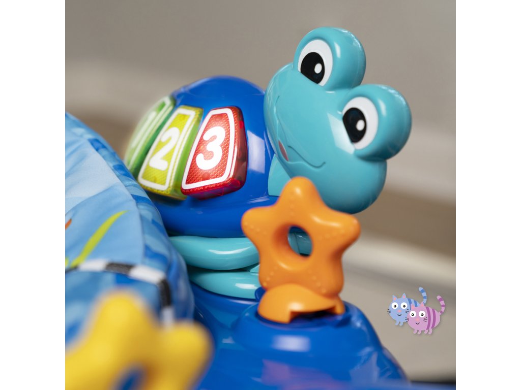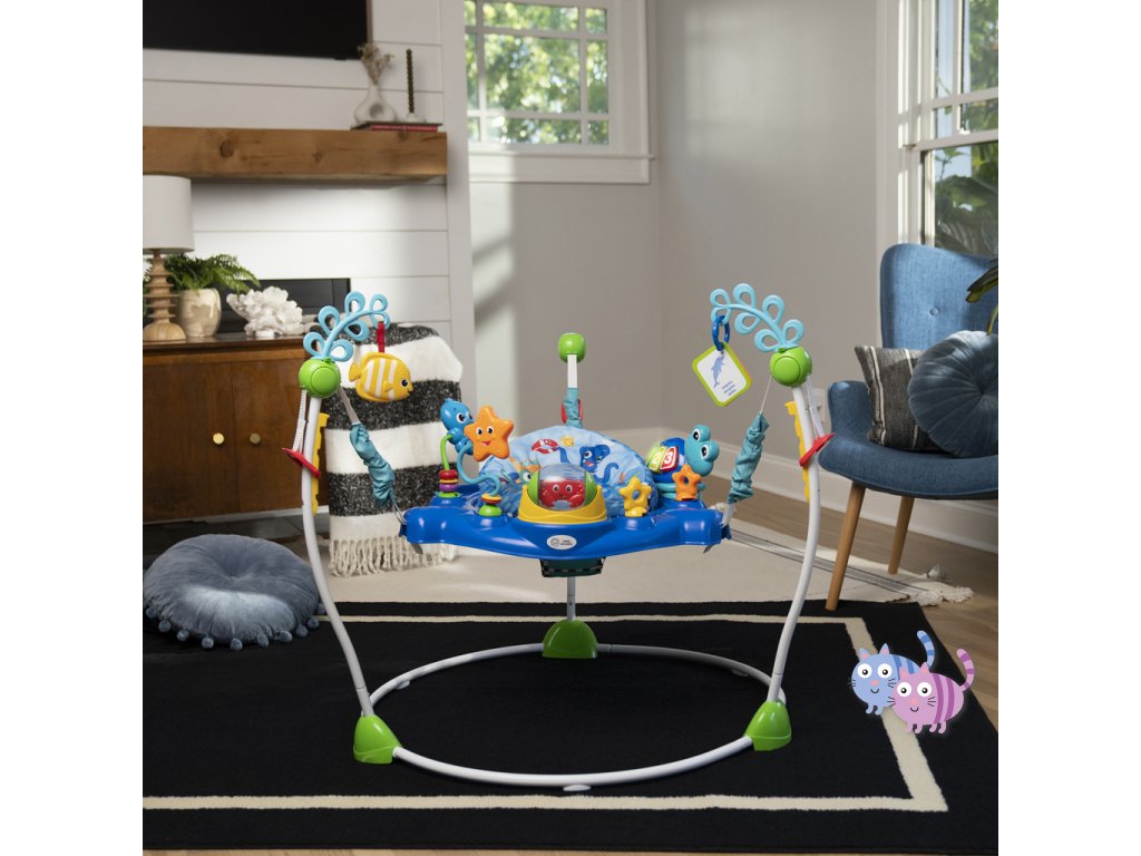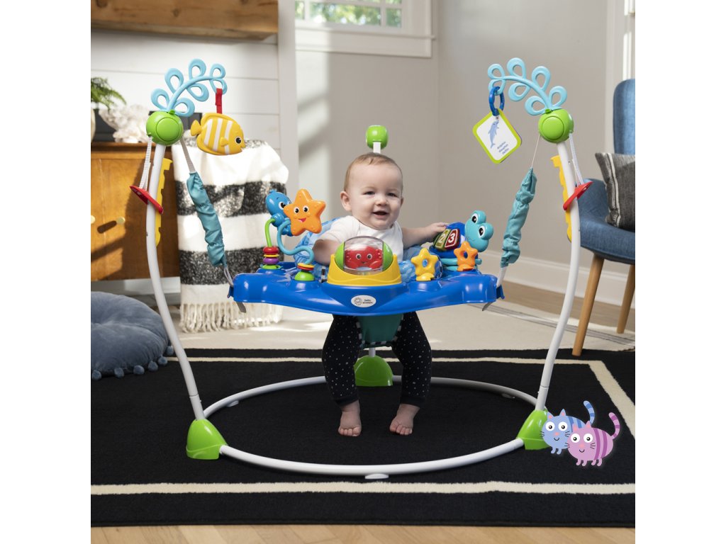 - Skákadlo 2v1 pro děti od 6 měsíců do 1 roku, které podporuje smyslové objevování světýlky, hudbou a zvuky oceánu.