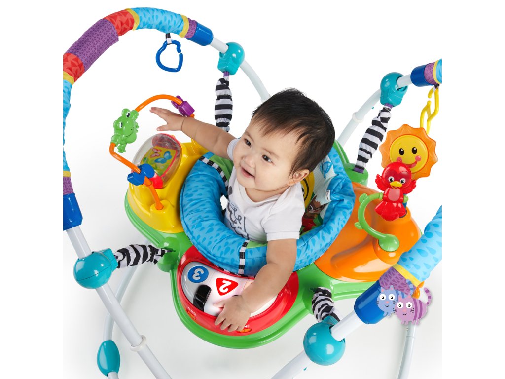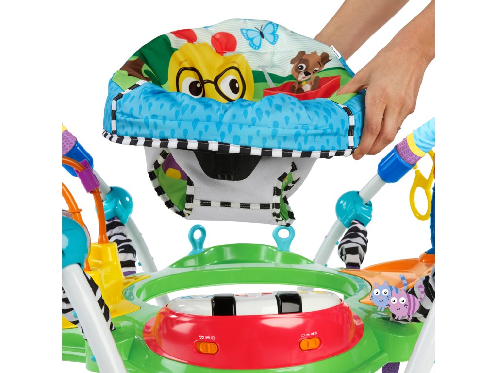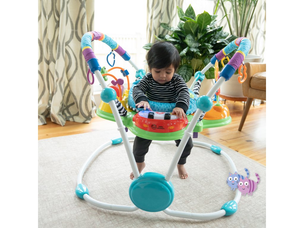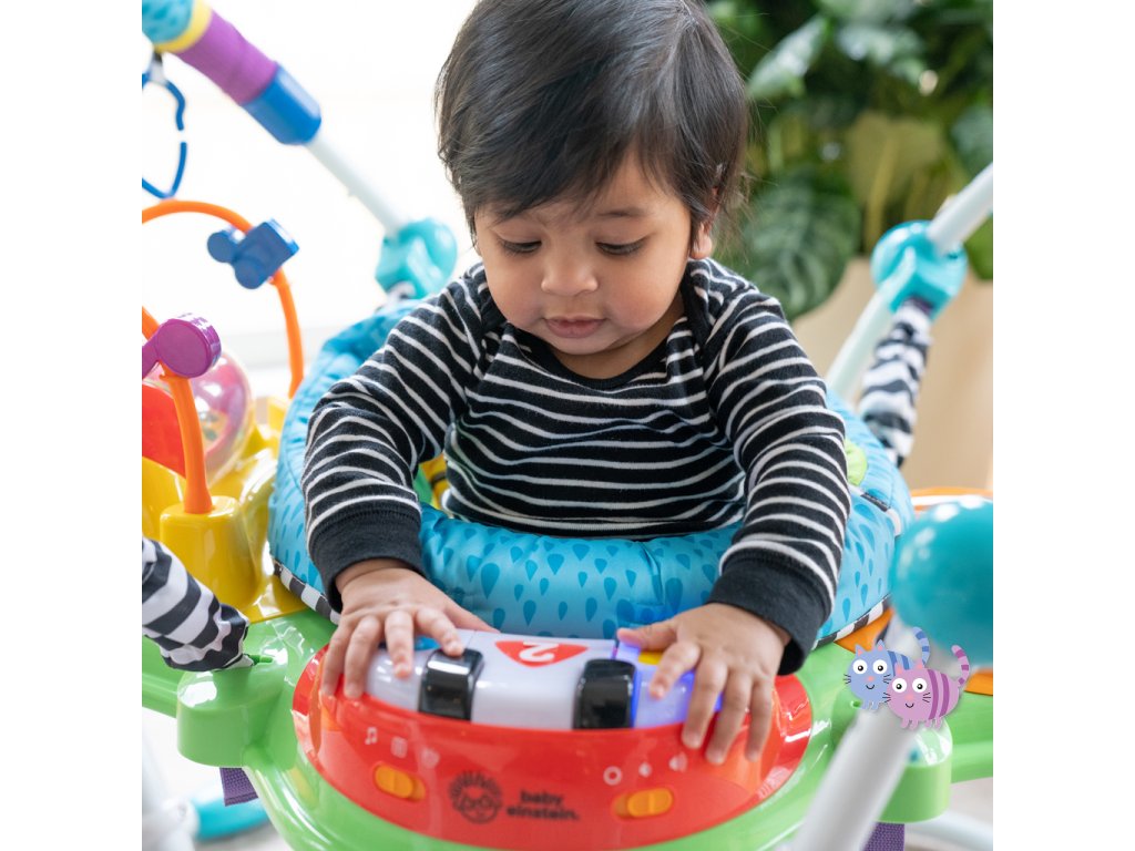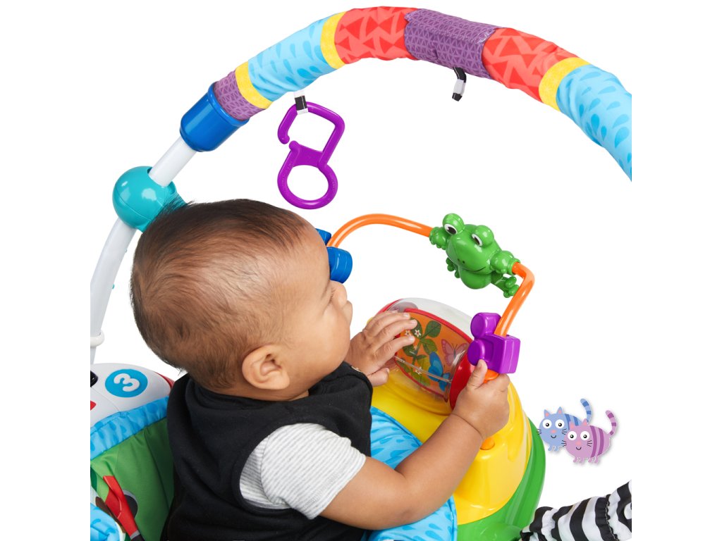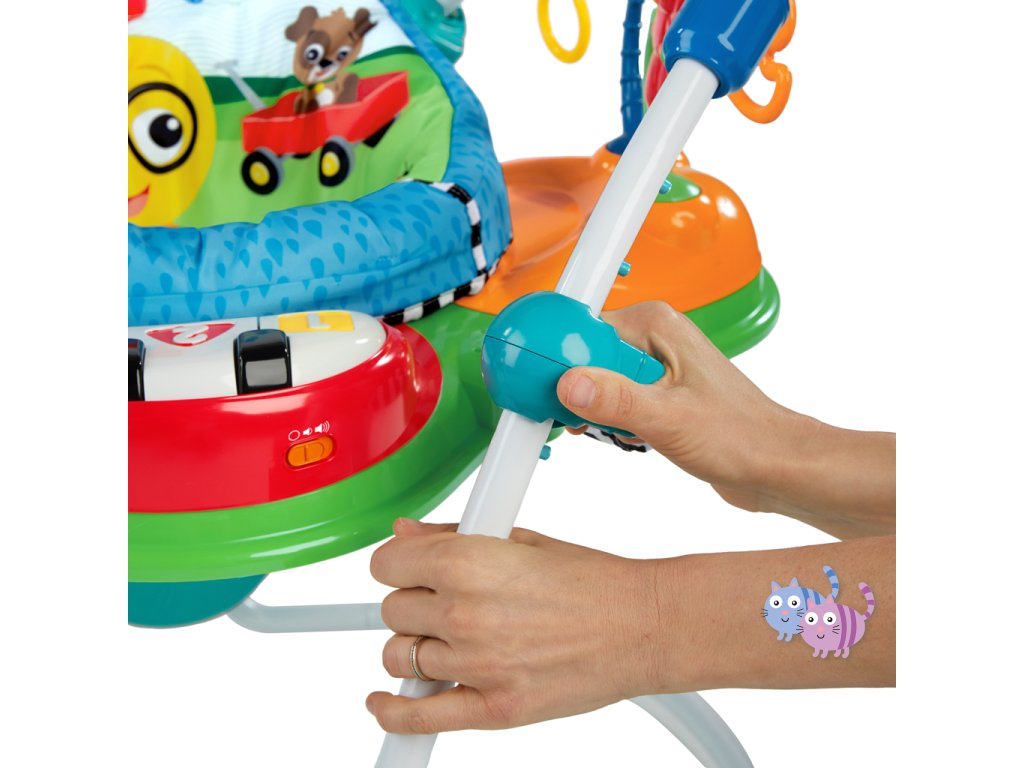 Zábava, pohyb a učení v jednom! S interaktivním skákadlem se každé hraní mění ve vzrušující dobrodružství. Toto oceňované centrum aktivit nabízí více než 12 různých podnětů pro rozvoj smyslů, motoriky a řeči – a to vše v bezpečí otočného sedadla s 360-stupňovým výhledem. Dítě může skákat, otáčet se, objevovat a tvořit – například hrát na světelné piano, chytat korálky na žabce nebo zkoumat nové zvuky. Skákadlo podporuje vývoj nohou, koordinaci oko-ruka a zvědavost. Jazykové prvky představují slova v angličtině, španělštině a francouzštině, což podporuje raný jazykový rozvoj. Dopřejte svému děťátku svět plný hudby, objevování a pohybu – vše na jednom místě.