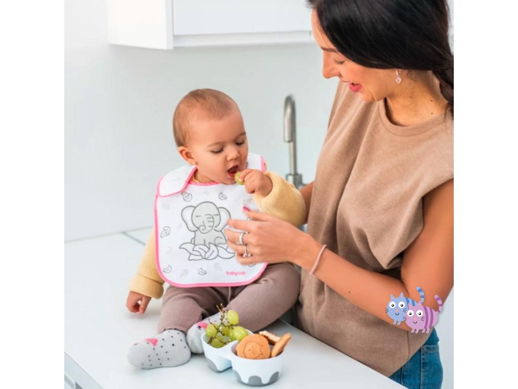 Bryndák s krásným motivem je vyroben z vysoce kvalitní froté bavlny. Vnitřní vrstva je z nepromokavého materiálu, který dodatečně chrání oblečení děťátka před znečištěním. Pohodlné a praktické zapínání na suchý zip zvyšuje pocit pohodlí pro děťátko.