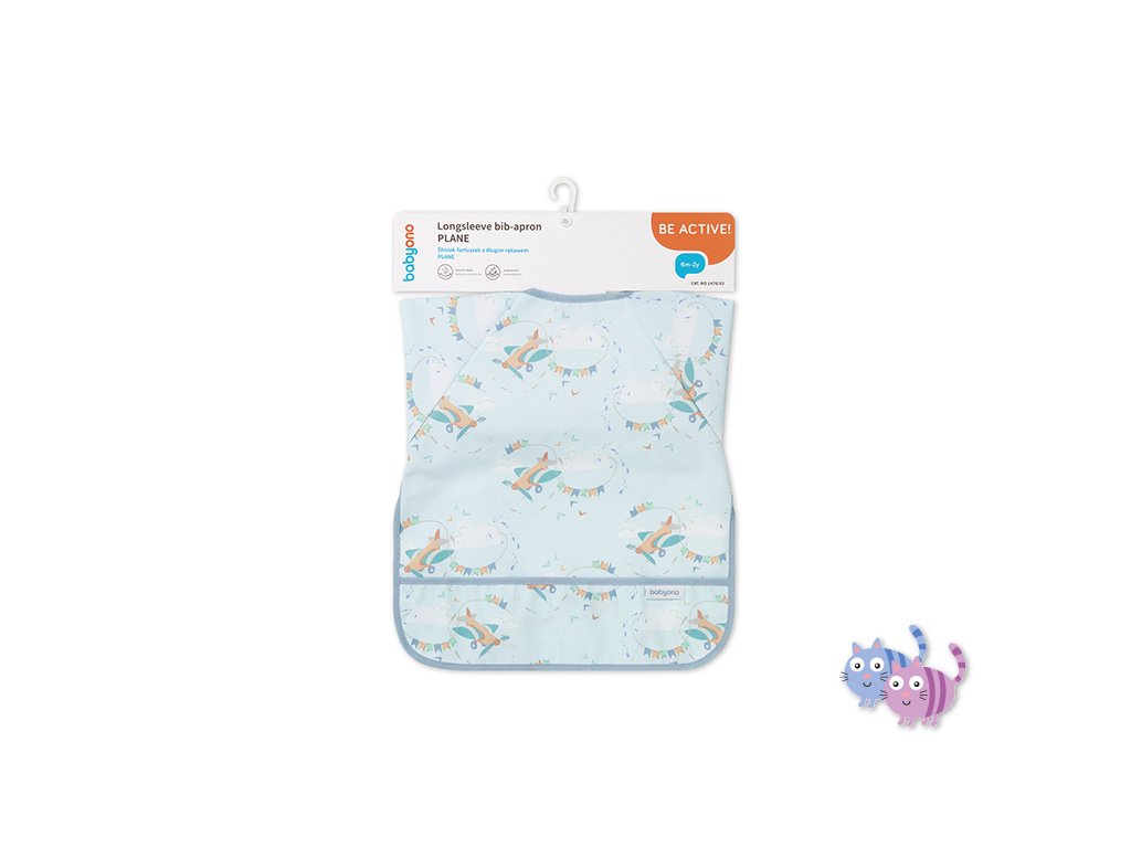 Bryndák s dlouhým rukávem je chytrý pomocník, který ochrání oblečení Vašeho miminka. Během jídla zajišťuje přední část oblečení i rukávy, které se obvykle ušpiní. Díky pružným gumičkám dobře přilne k malým ručičkám miminka. Bryndák s rukávy má také praktickou kapsu na drobky, která zachycuje zbytky jídla. Zástěra s rukávy je voděodolná a snadno se čistí, takže se osvědčí, když se děťátko učí jíst samo. Zapínání bryndáku můžete libovolně přizpůsobit velikosti krku miminka.