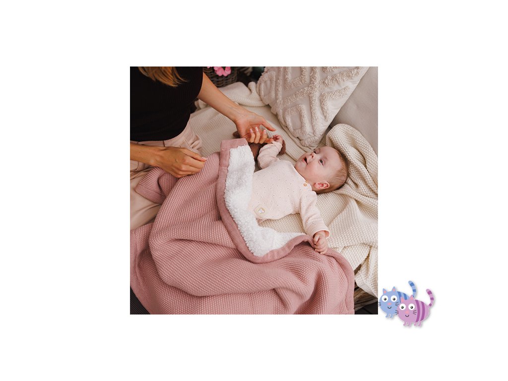 Tato dvouvrstvá deka je ideální volbou pro chladnější dny. Vrchní vrstva je vyrobena z přírodní bavlny - jemné a bezpečné pro citlivou pokožku dítěte. Spodní strana je podšita hustou sherpa látkou (flísem), která připomíná jehněčí kožešinu a výborně izoluje teplo. Deka nedráždí pokožku, vytváří pocit bezpečí a pohodlí, takže vaše dítě se bude cítit jako v měkkém, teplém obláčku. Ideální pro novorozence, kojence i starší děti – doma, na procházkách či na cestách.