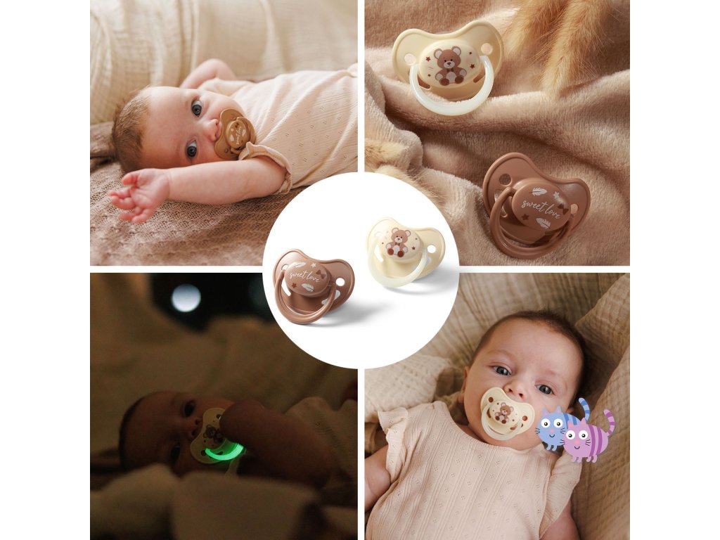 - Denní a noční dudlík – v balení naleznete jednu klasickou a jednu se svítící rukojetí, kterou snadno najdete i ve tmě