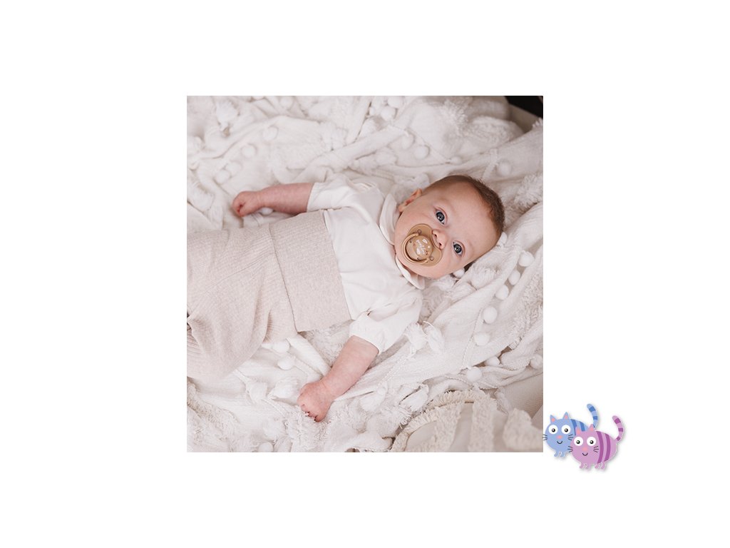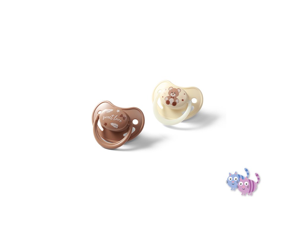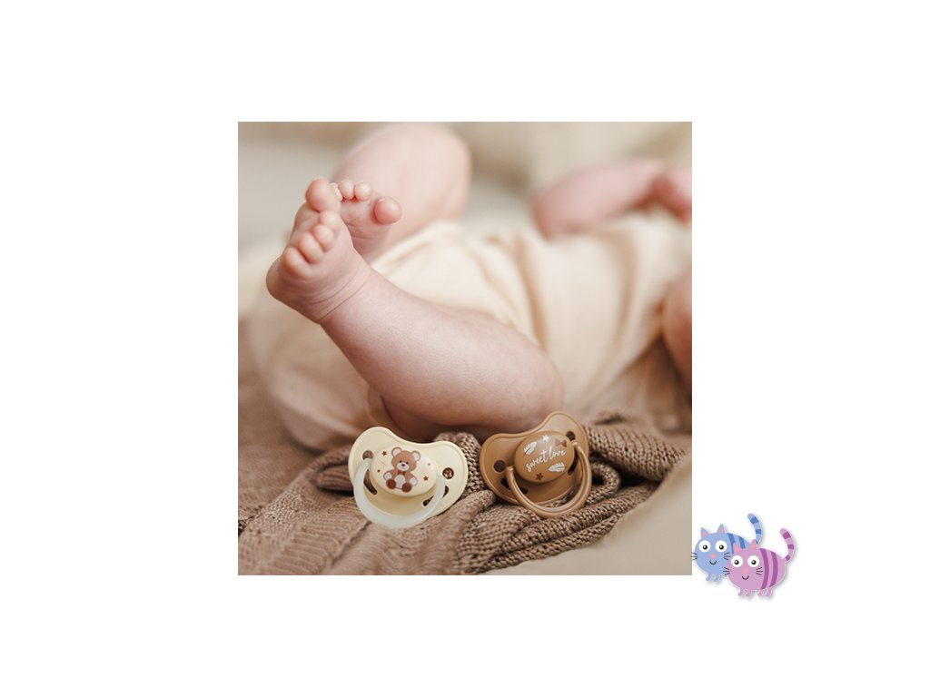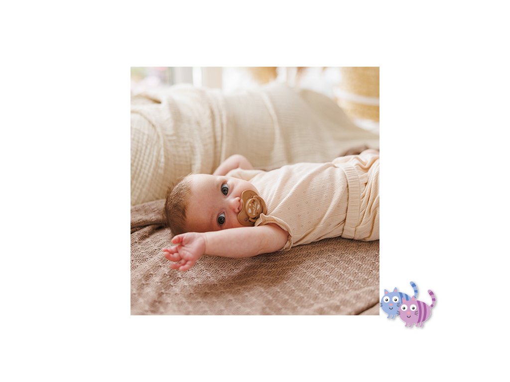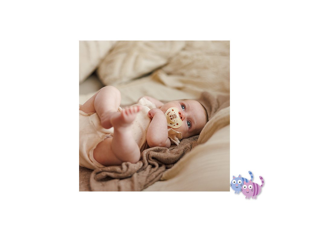 Anatomický silikonový dudlík pomáhá uklidnit miminko a dopřeje všem chvilku odpočinku. Vypuklá horní a zploštělá spodní část dudlíku se dokonale přizpůsobí ústům dítěte a podporuje zdravý vývoj patra a skusu. Profilovaný štítek s otvory umožňuje volné dýchání a zajišťuje cirkulaci vzduchu kolem úst. Náustek je vyroben z hypoalergenního, bezpečného silikonu, který je odolný vůči poškození a neobsahuje BPA. Balení obsahuje 2 dudlíky pro děti ve věku 0–6 měsíců – jeden pro denní použití a jeden se svítící rukojetí, ideální pro noční zklidnění.