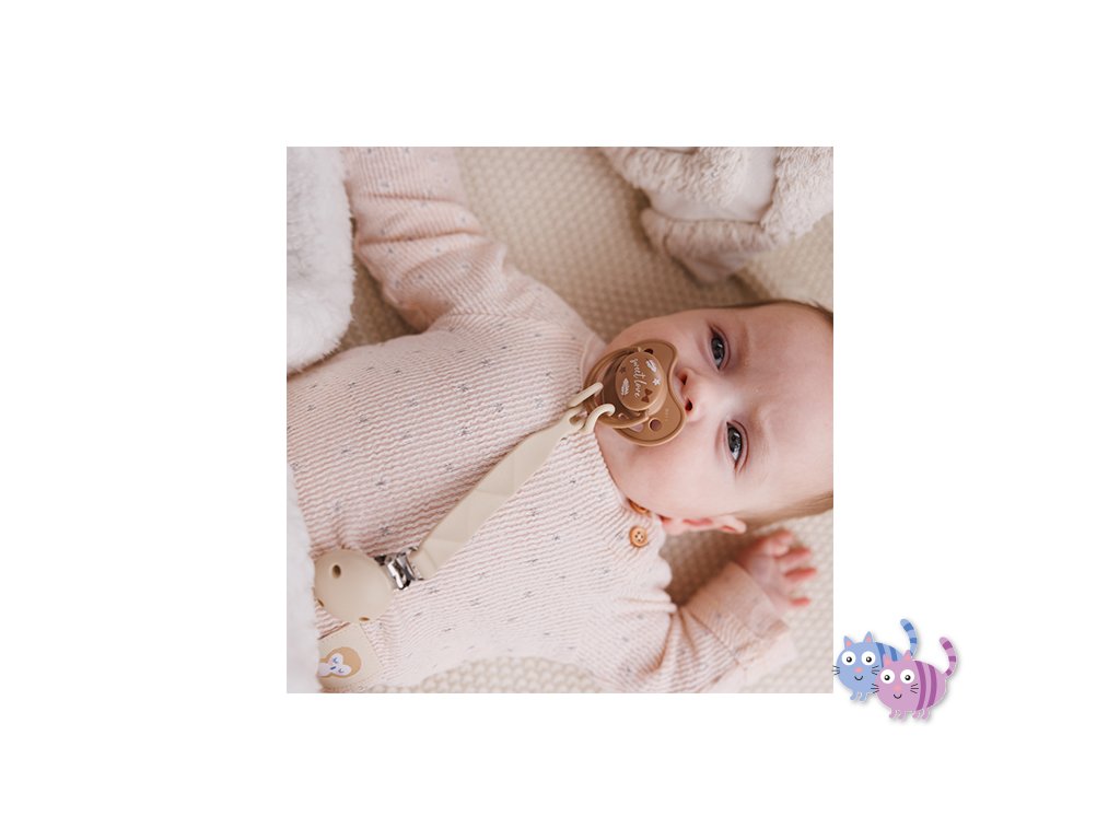- Možnost připevnění řetízku – k rukojeti dudlíku lze připevnit řetízek nebo klip, aby byl dudlík vždy po ruce