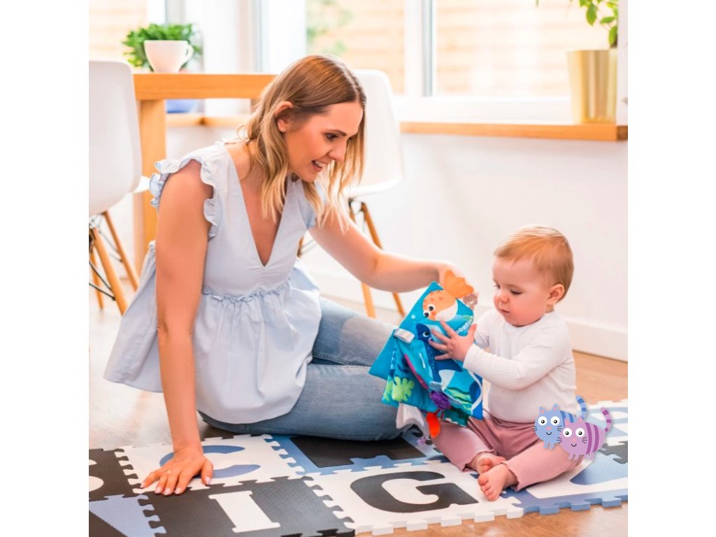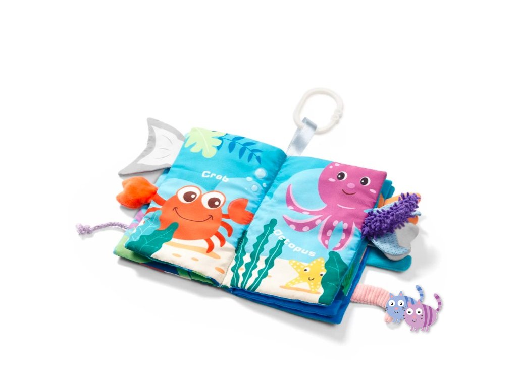 Tato kniha byla vytvořena s ohledem na smyslový vývoj dítěte. Zajímavě ukazuje podmořský svět. Díky stuhám vyčnívajícím za okraj knihy umožňuje dítěti studovat různé materiálové textury.