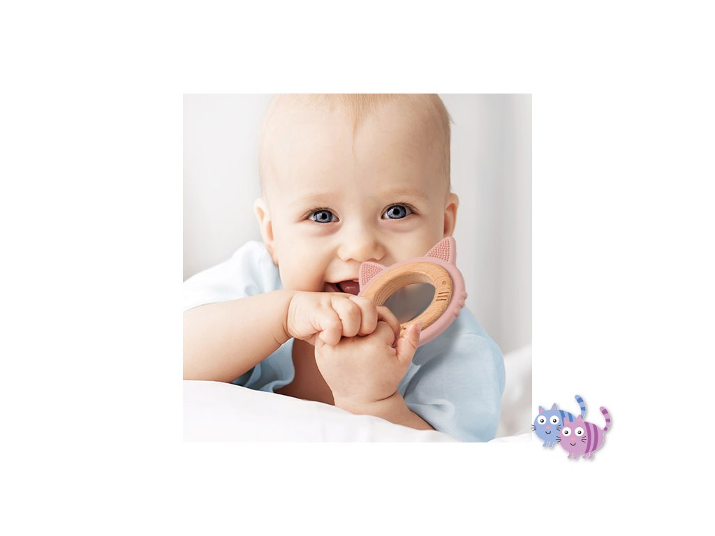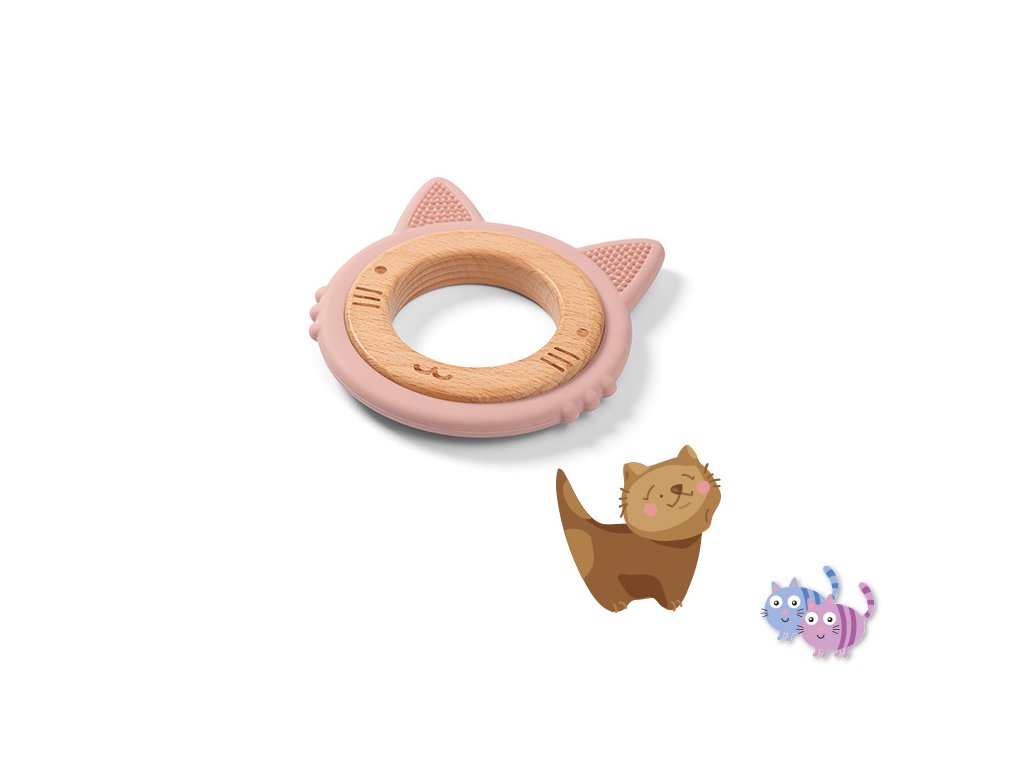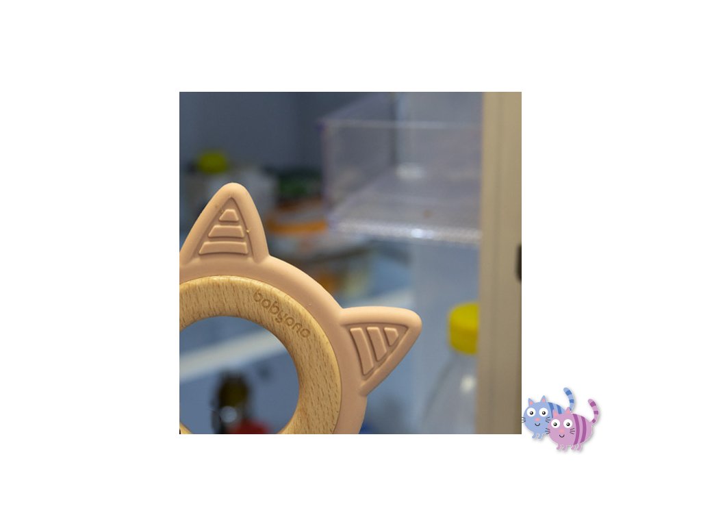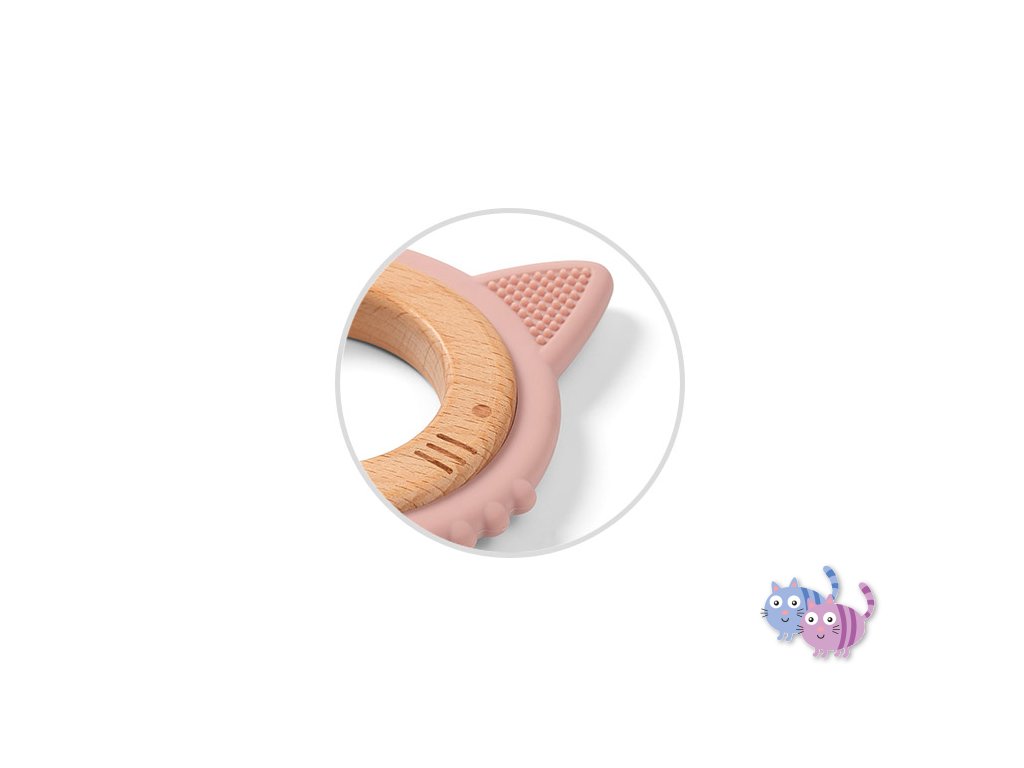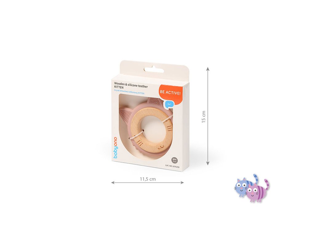 BABYONO Kousátko dřevěno-silikonové Kitten