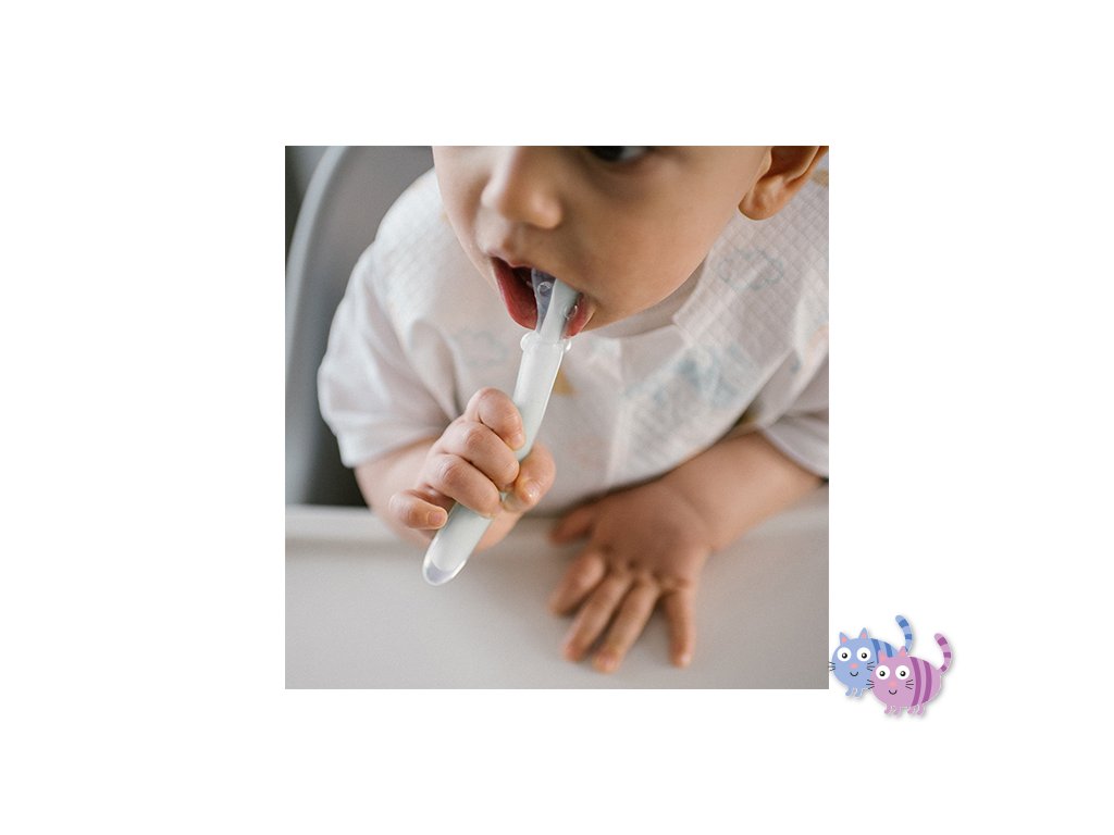 - Je vyroben z měkkého silikonu. Lžička je šetrná k dásním a zubům děťátka a její používání je bezpečné.