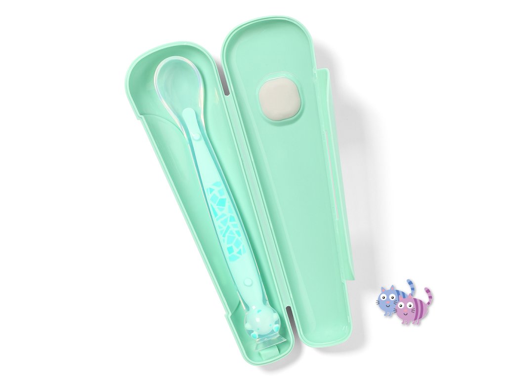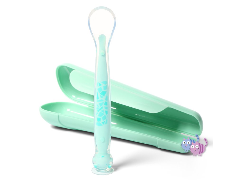 Silikonová lžička s přísavkou a obalem je vynikajícím pomocníkem v domácnosti, na procházce nebo na cestách.