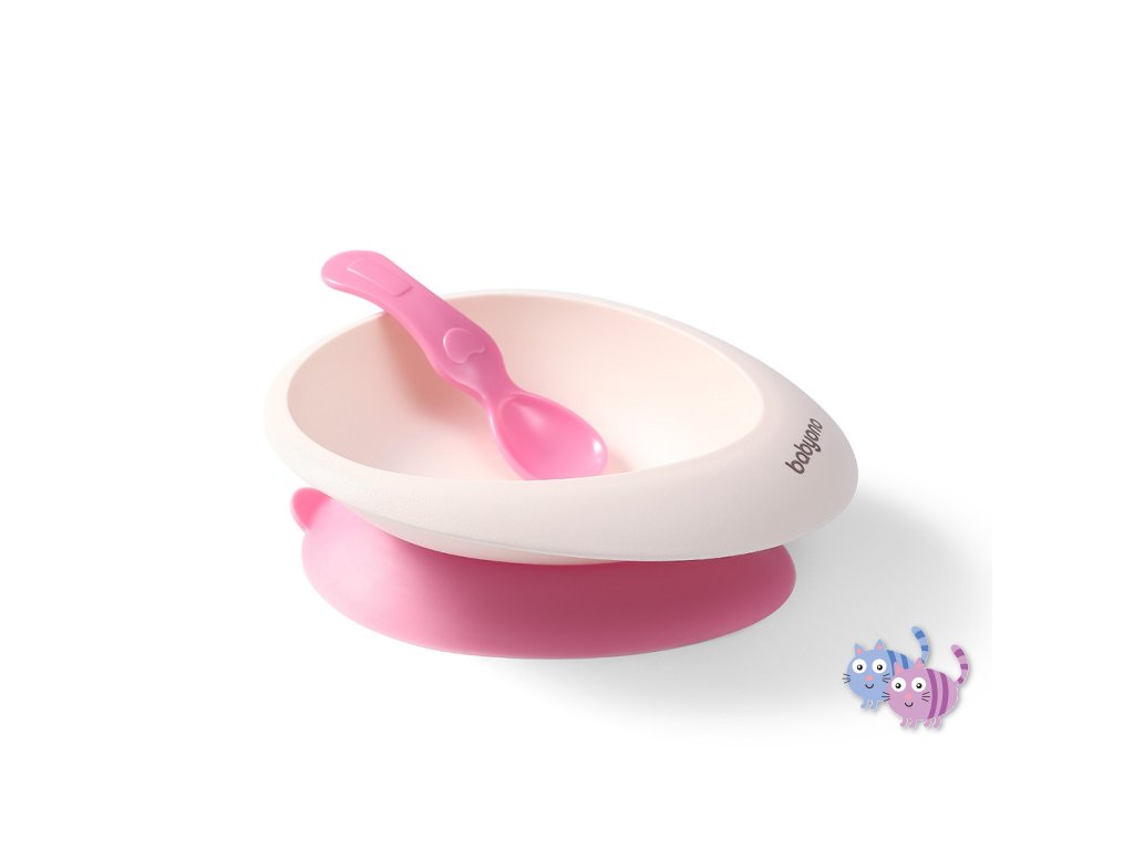 BABYONO Miska s přísavkou a lžičkou růžová 230 ml 6m+