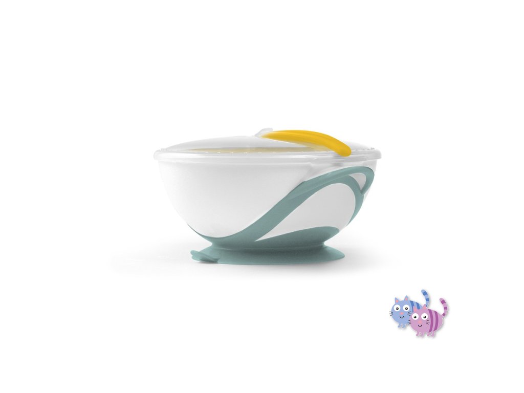 BABYONO Miska uzavíratelná s přísavkou a lžičkou 300 ml zeleno/žlutá