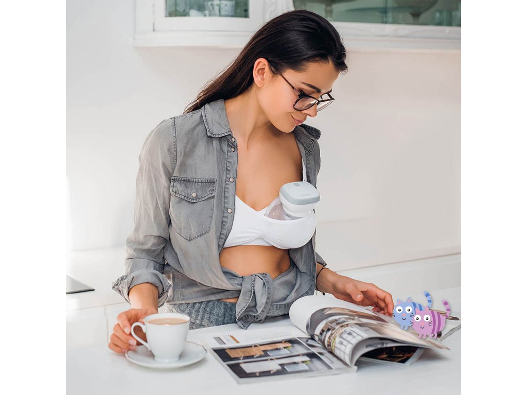 Inovativní design elektrické handsfree odsávačky mléka Vám umožní odsávat mléko a zároveň dělat jiné věci. Jedná se o unikátní a praktický přístroj, který odsává mléko bez potřeby použití rukou.