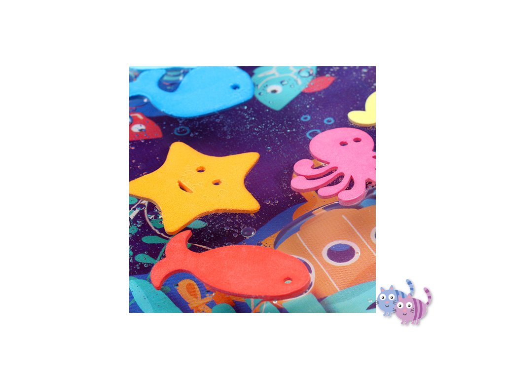Senzorická vodní podložka poskytuje Vašemu děťátku skvělou zábavu a efektivní cvičení. Vaše děťátko může měnit její polohu a vidět barevné tvary pohybující se ve vodě. Díky tomu se může naučit udržovat rovnováhu a procvičovat pohyb. Před hrou můžete podložku snadno naplnit vzduchem a vodou, jakož i vyprázdnit a srolovat, když hra skončí.