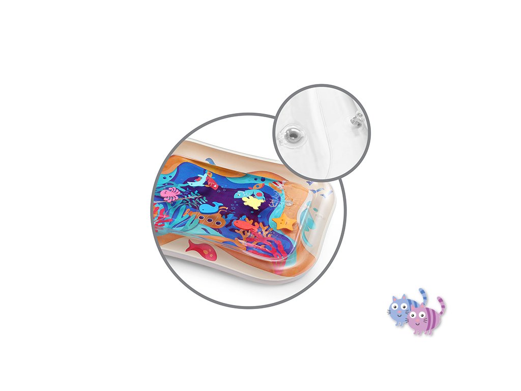 Nafukovací, vodou plnitelná podložka je pro Vaše děťátko jako tělocvična. Volná zábava na podložce rozvíjí motorické schopnosti a koordinaci. Děťátko si může trénovat svaly nožiček, ručiček, bříška a záda a zároveň zlepšovat své schopnosti udržovat rovnováhu.