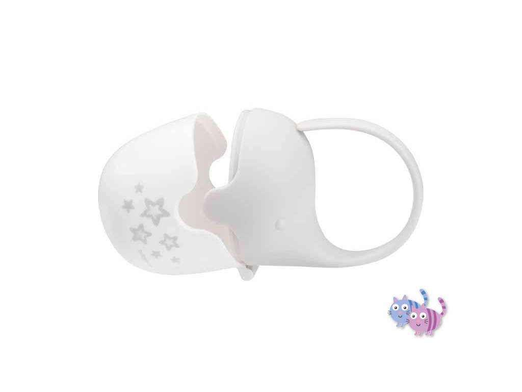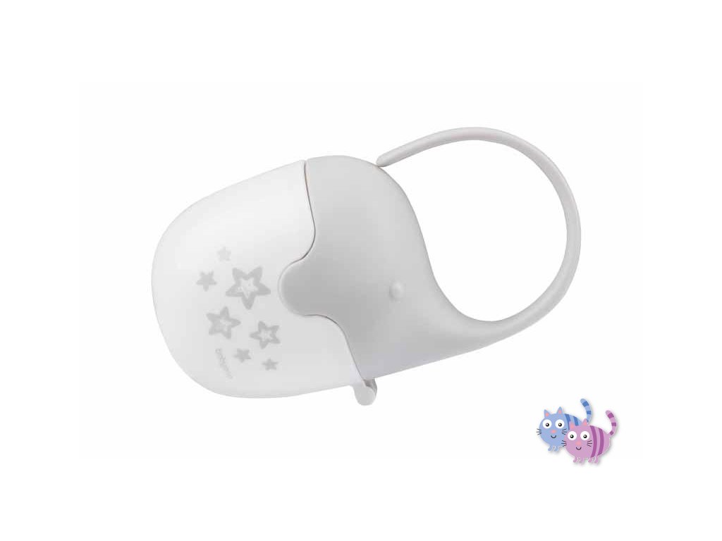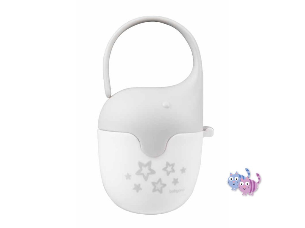 Krabička na šidítko je praktickým produktem během jízdy. Chrání dětský dudlík před špínou, snadno se používá a snadno se připevní. Pomocí pružného úchytu lze připevnit krabičku na kočárek nebo autosedačku. Vyrobeno z bezpečných materiálů neobsahuje bisfenol A.