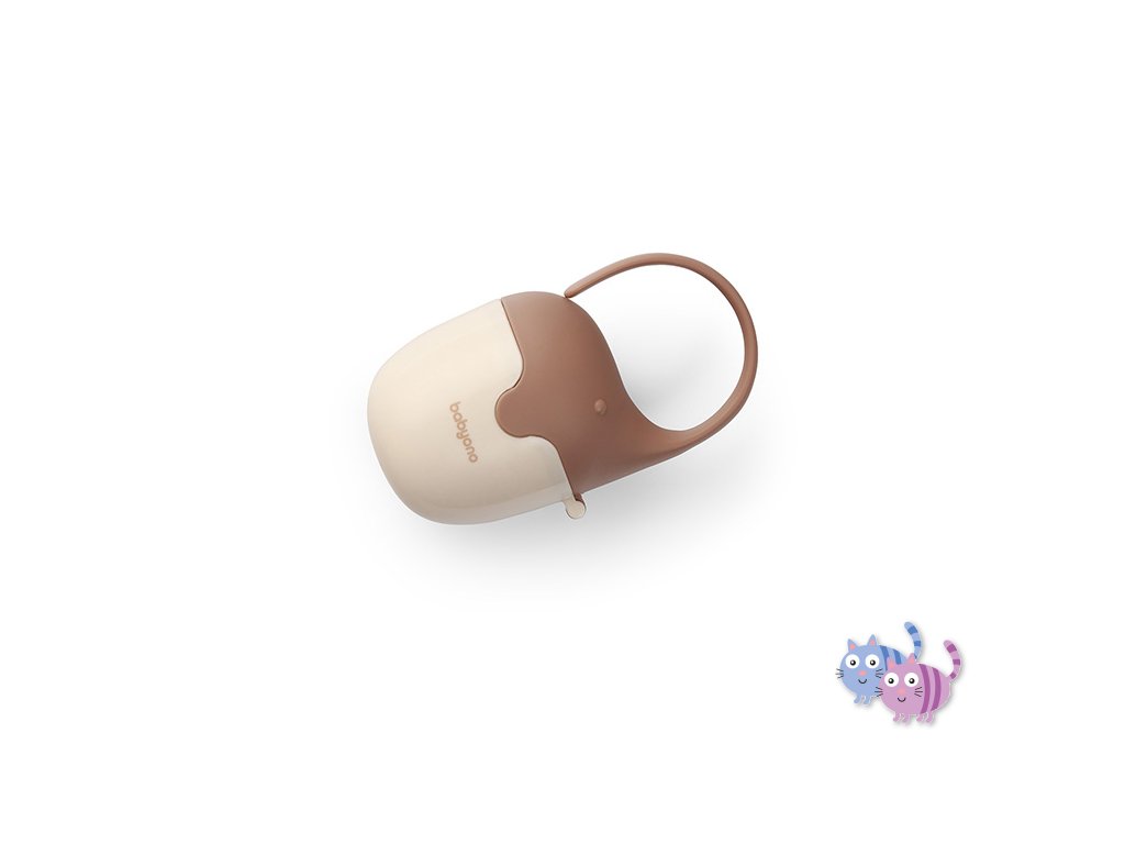 Tato nádobka ve tvaru slona slouží k přenášení a uložení dudlíku. Je nezbytná pro každou procházku a chrání dudlík před ztrátou a znečištěním. Díky flexibilní rukojeti lze nádobku zavěsit na rukojeť kočárku, autosedačky nebo tašky na kočárek. Neobsahuje BPA.