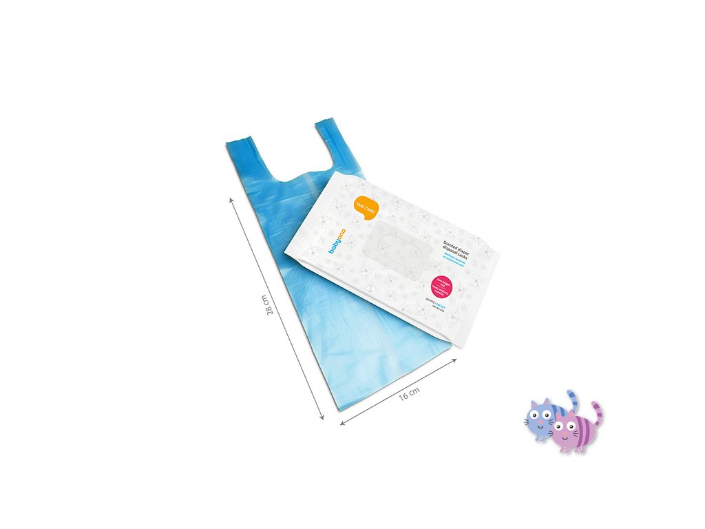 Voňavé sáčky na likvidaci použitých plenek - pohodlný a hygienický způsob, jak se zbavit použitých plenek a dětských ubrousků. Pěkně voní a neutralizují nepříjemný zápach. Jsou dostatečně velké, uzavíratelné, netransparentní a jednoduché na použití.