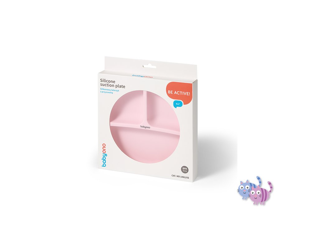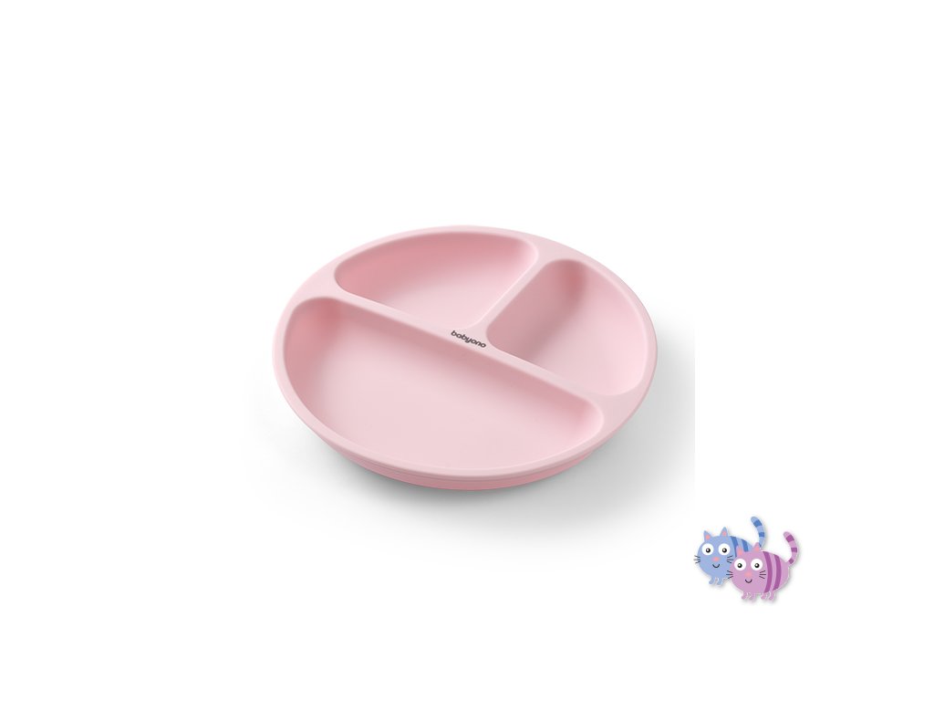 BABYONO Talíř silikonový s přísavkou - pink 6m+