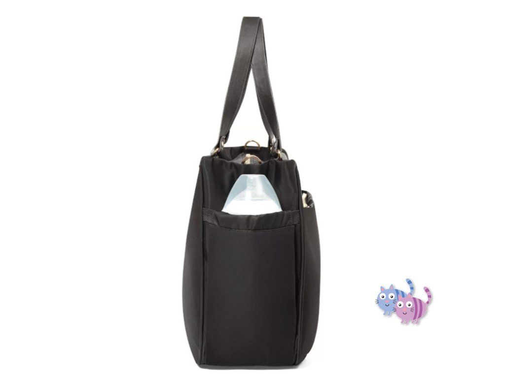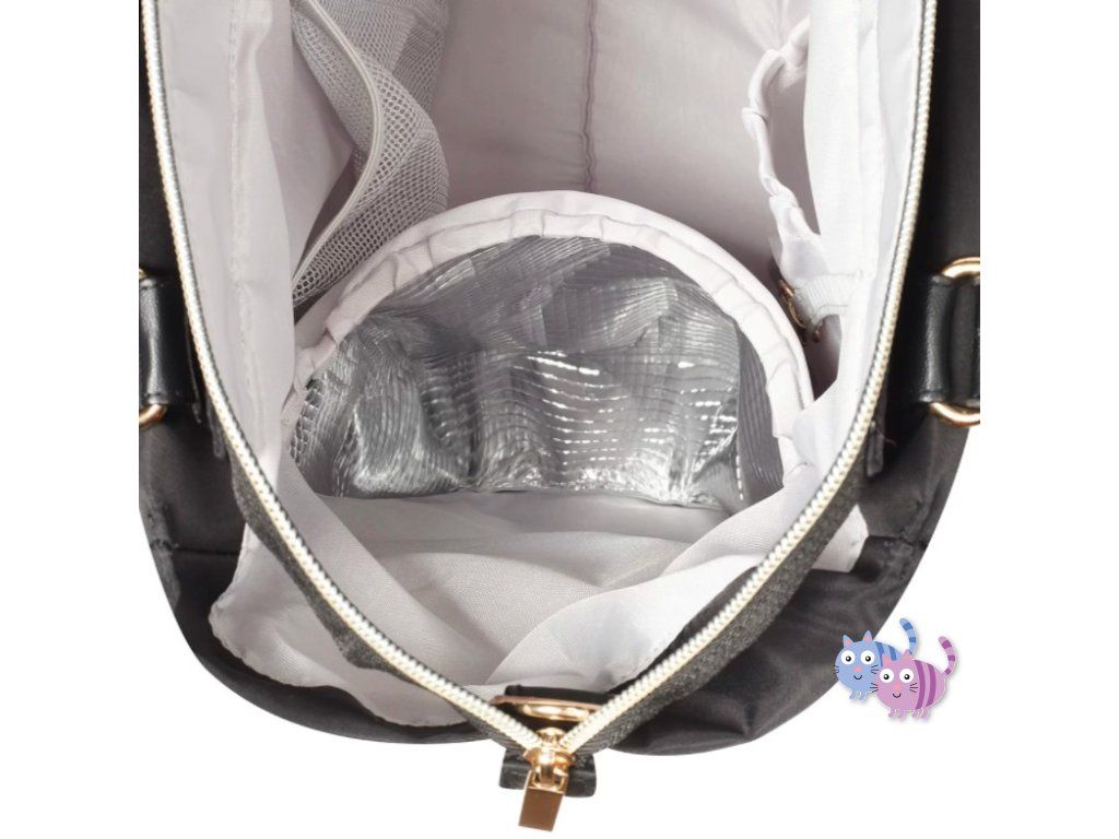 Taška je opatřena šňůrkou, která vám umožní snadno najít klíče. Najdete zde i kapsu na zip s rychlým přístupem, která pojme telefon. Vnější boční kapsy slouží na praktické uložení lahví dětské výživy a nápojů. Funkce tepelné izolace kapsy umístěné uvnitř tašky vám však umožňuje udržet požadovanou teplotu jídla.