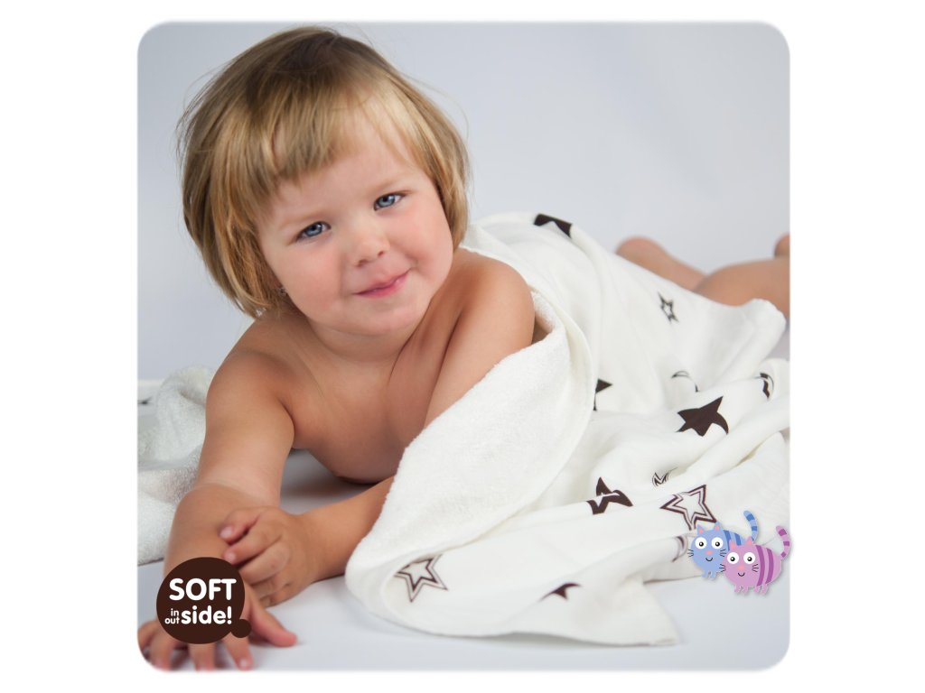 „Je úplně jedno, zde je léto nebo zima. Z jedné strany bude Vaše miminko hřát měkoučká bavlna a z té druhé úžasně chladit jemné bambusové froté." Dlouhá úzká deka, ideální do kočárku. Pokud potřebujete deku trochu širší, doporučujeme několikavrstvou mušelínovou bambusovou deku. Je teplo a víc vrstev je moc? Správnou volbou je velká bambusová plena nebo to samé, o trochu levnější z biobavlny.