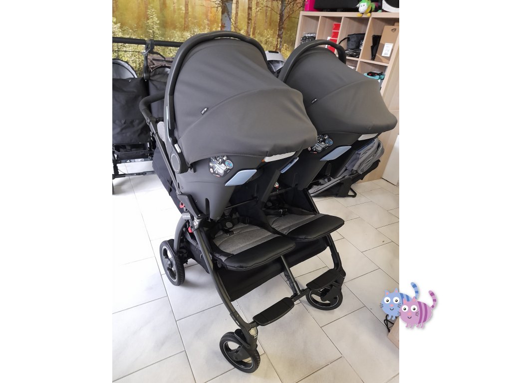 kočárek Book for two, 2 polohovací autosedačky Lounge a adaptér na autosedačky k připevnění ke kočárku.