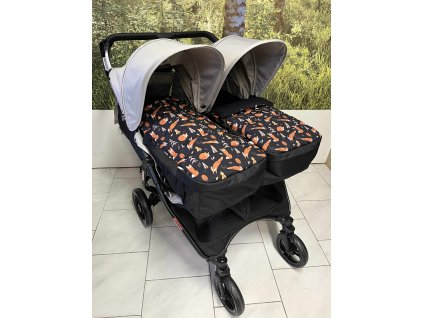 3. vzhledem k omezené nabídce doplňků pro dvojčata jsme je začali sami vyrábět - fusaky pro každé roční období, podložky do kočárku, nánožníky, pláštěnky, sety do korbiček, návleky na kola, tašky - vše se dá u nás ušít přímo na míru a barvu k vašemu kočárku, máte vše přesně a originálně jen pro vás. Sami si kočárek vyzdobíte, jak potřebujete.
